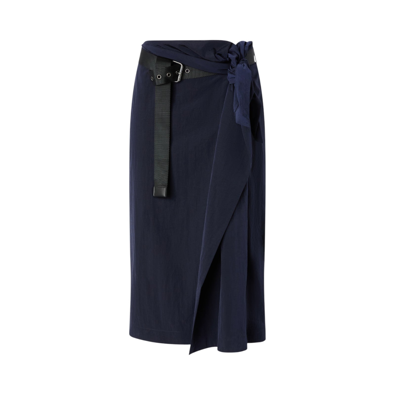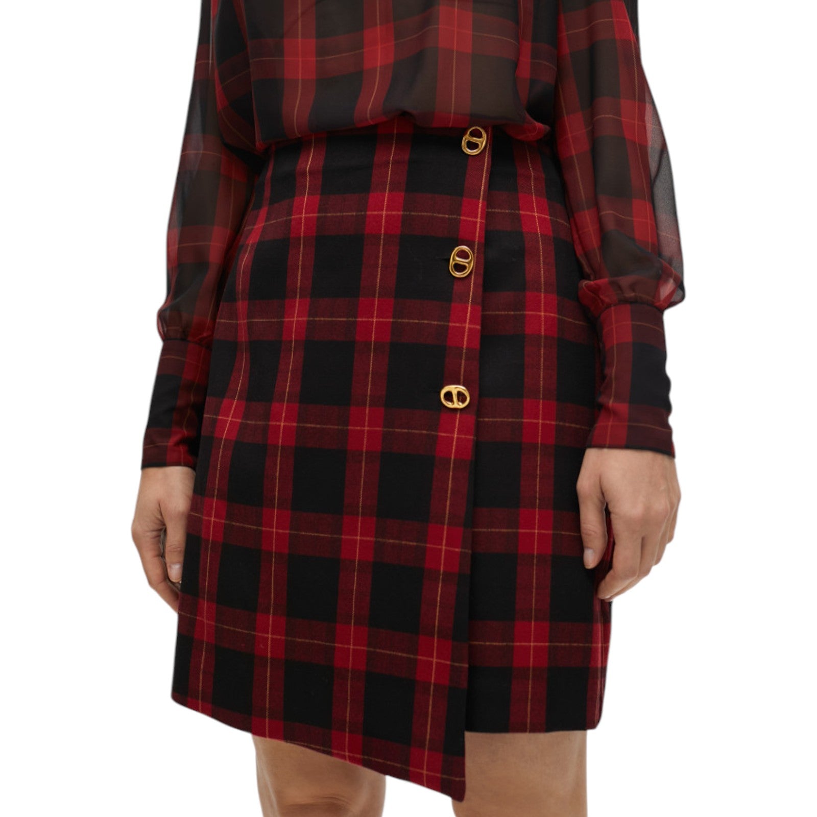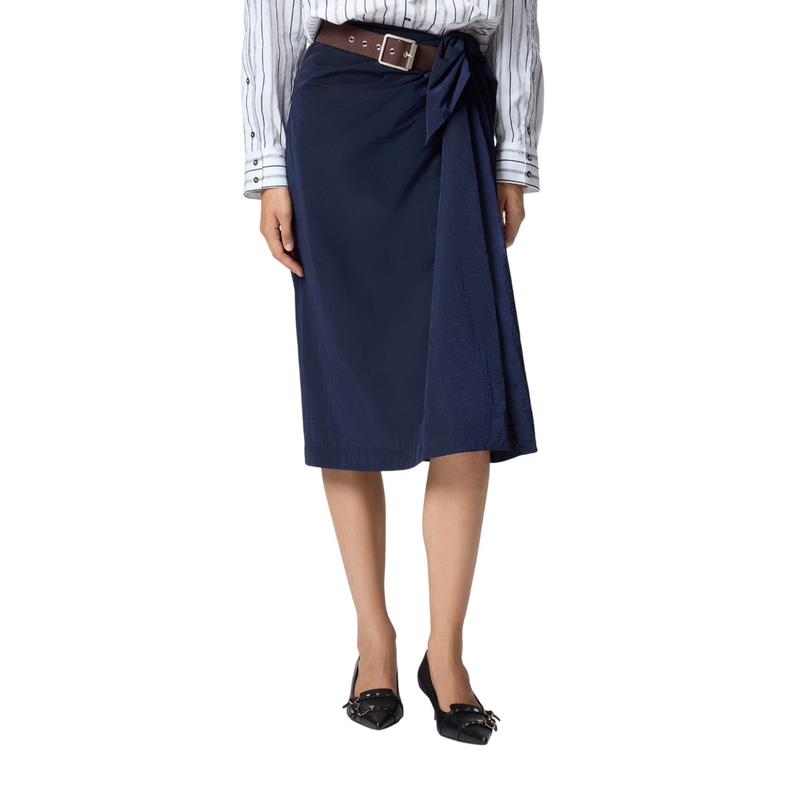 Gonna donna corta asimmetrica in tessuto tecnico con cintura
