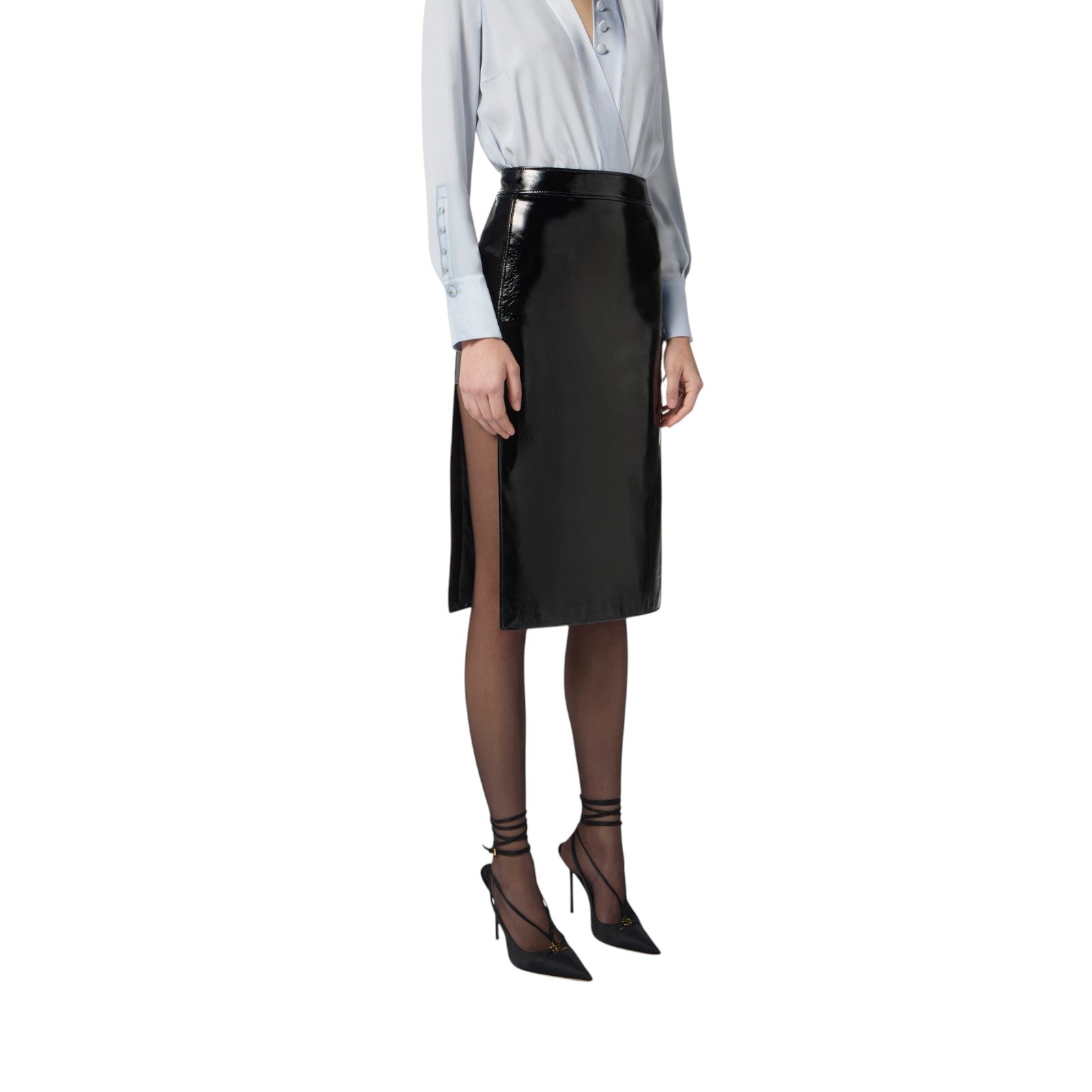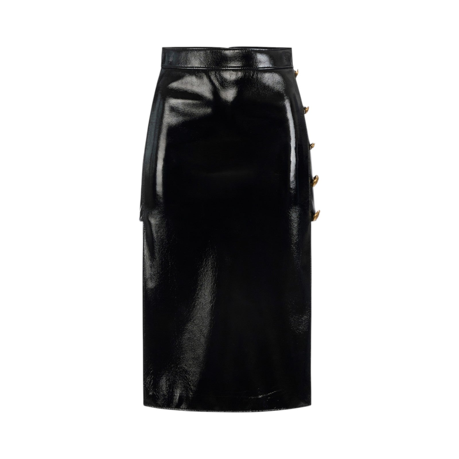 Gonna donna in vinile con bottoni gioiello