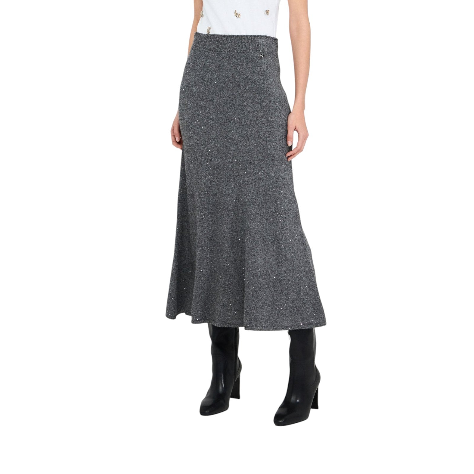 Gonna donna midi in maglia con paillettes