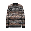 Maglia girocollo firmata Laneus, realizzata con l'iconico jacquard, rivisitato per la nuova stagione. Il motivo multicolore, ricco e dettagliato, include il logo "Laneus" integrato in modo elegante all'interno della trama. La vestibilità è regular, con finiture a costine su collo, fondo e polsi.