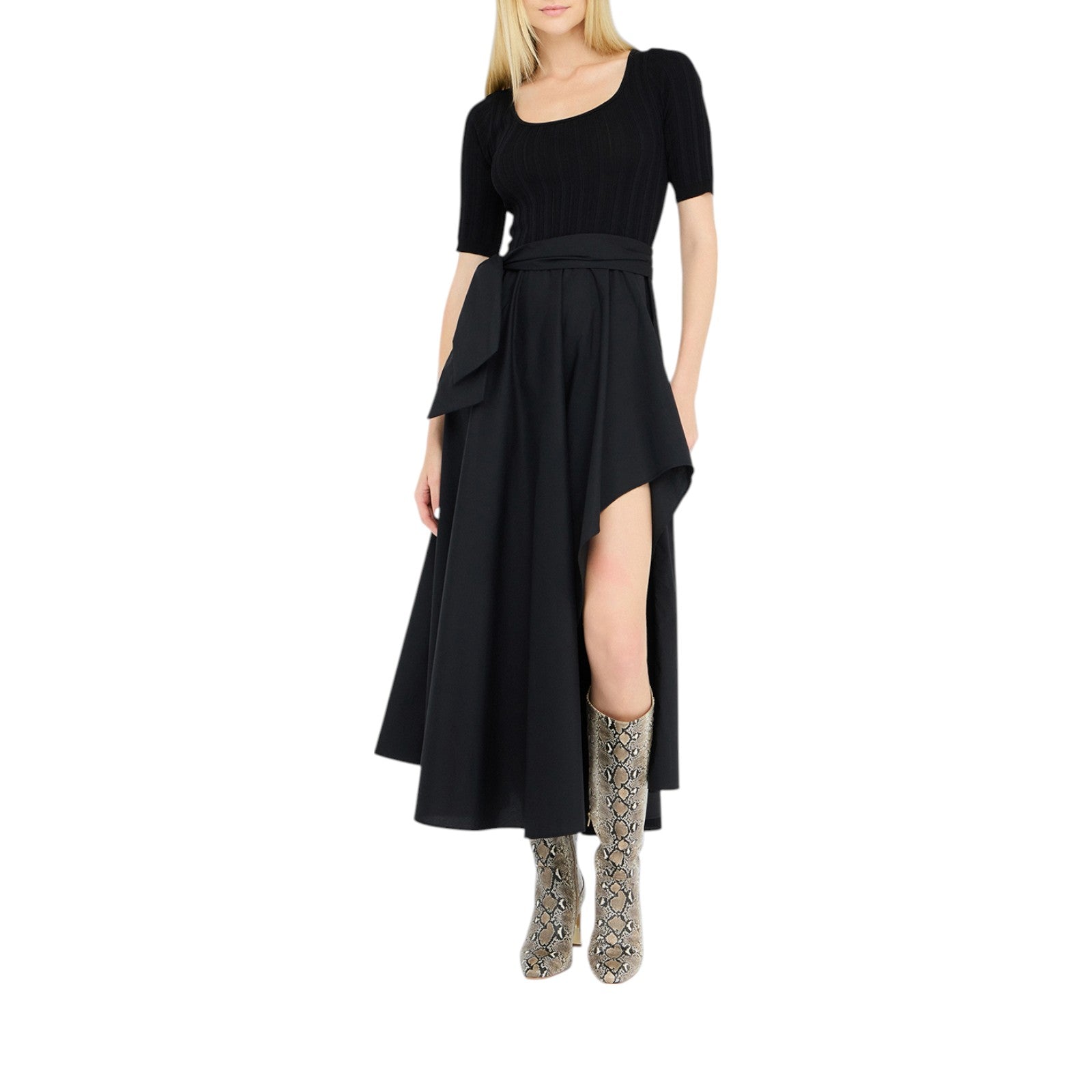 Abito donna lungo in maglia e popeline