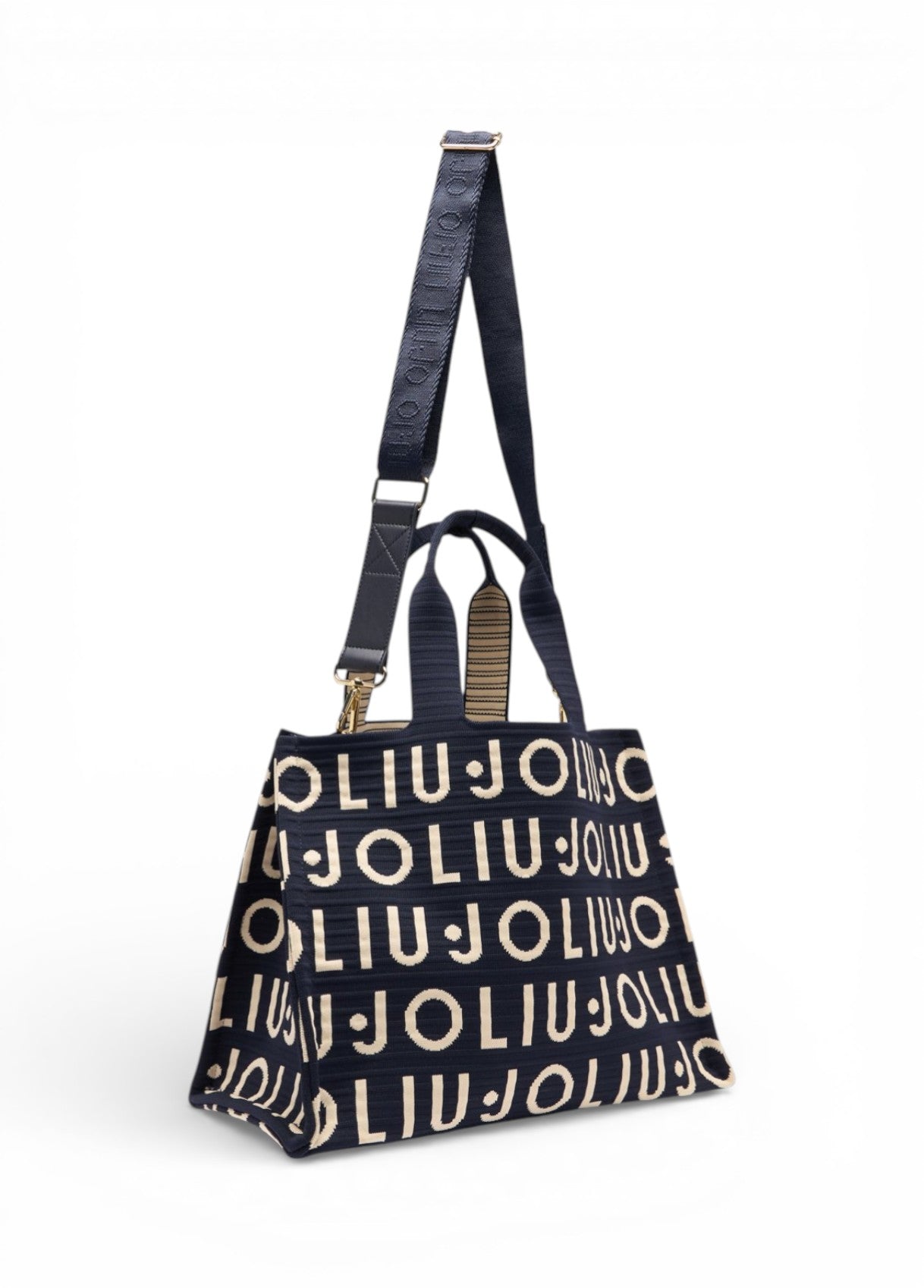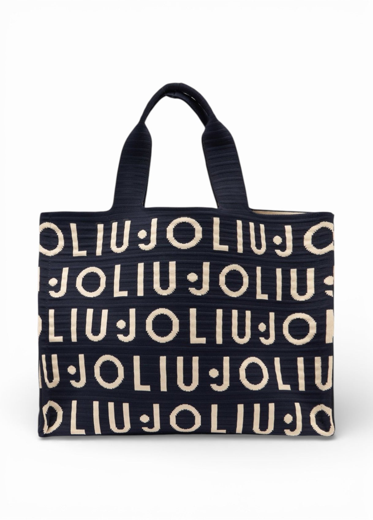Borsa tote media in maglia. Logo jacquard. Interno sfoderato. Pochette chiusa con zip. Manici in tono colore. Tracolla removibile.