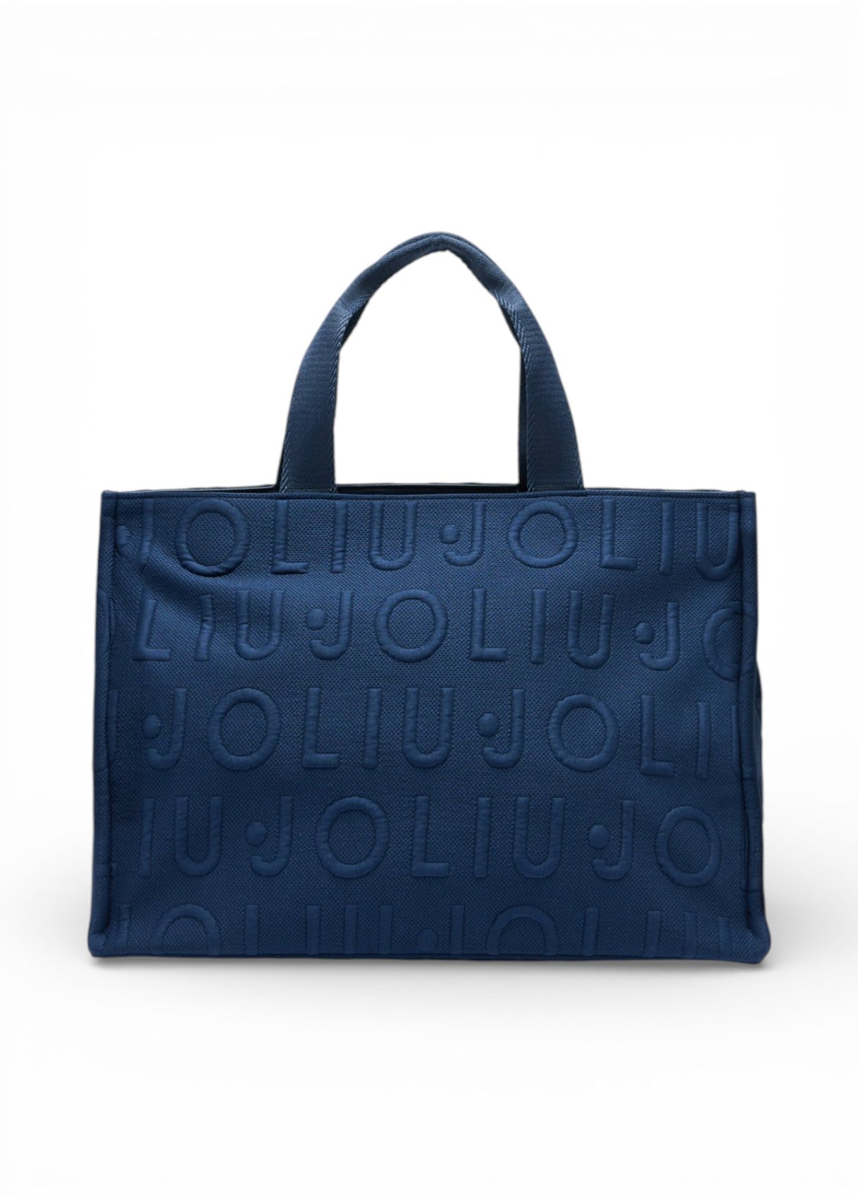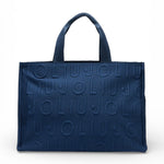 Borsa tote media in maglia. Logo jacquard. Interno sfoderato. Pochette chiusa con zip. Manici in tono colore. Tracolla removibile.