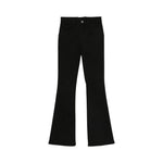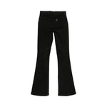 Jeans in denim di cotone stretch. Tagli bottom up. Vita regolare. Gamba flare. Modello cinque tasche. Inserto elastico in vita sul retro. Logo in metallo sul retro. Chiusura con bottone e zip coperta. La modella è alta 180 cm e indossa la taglia 27.
