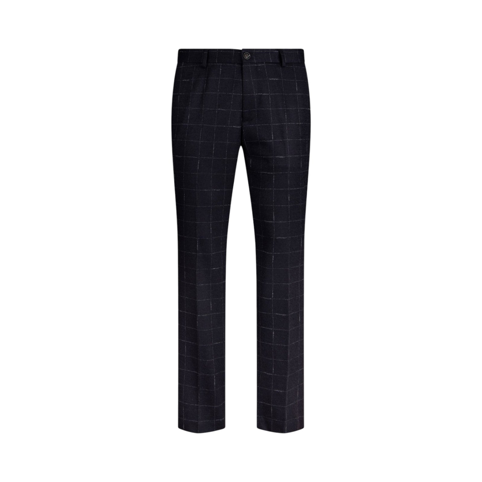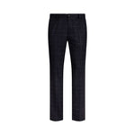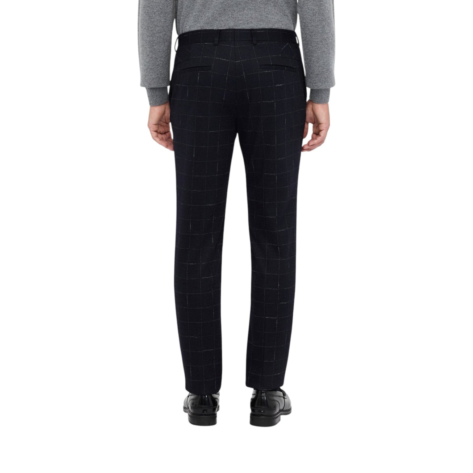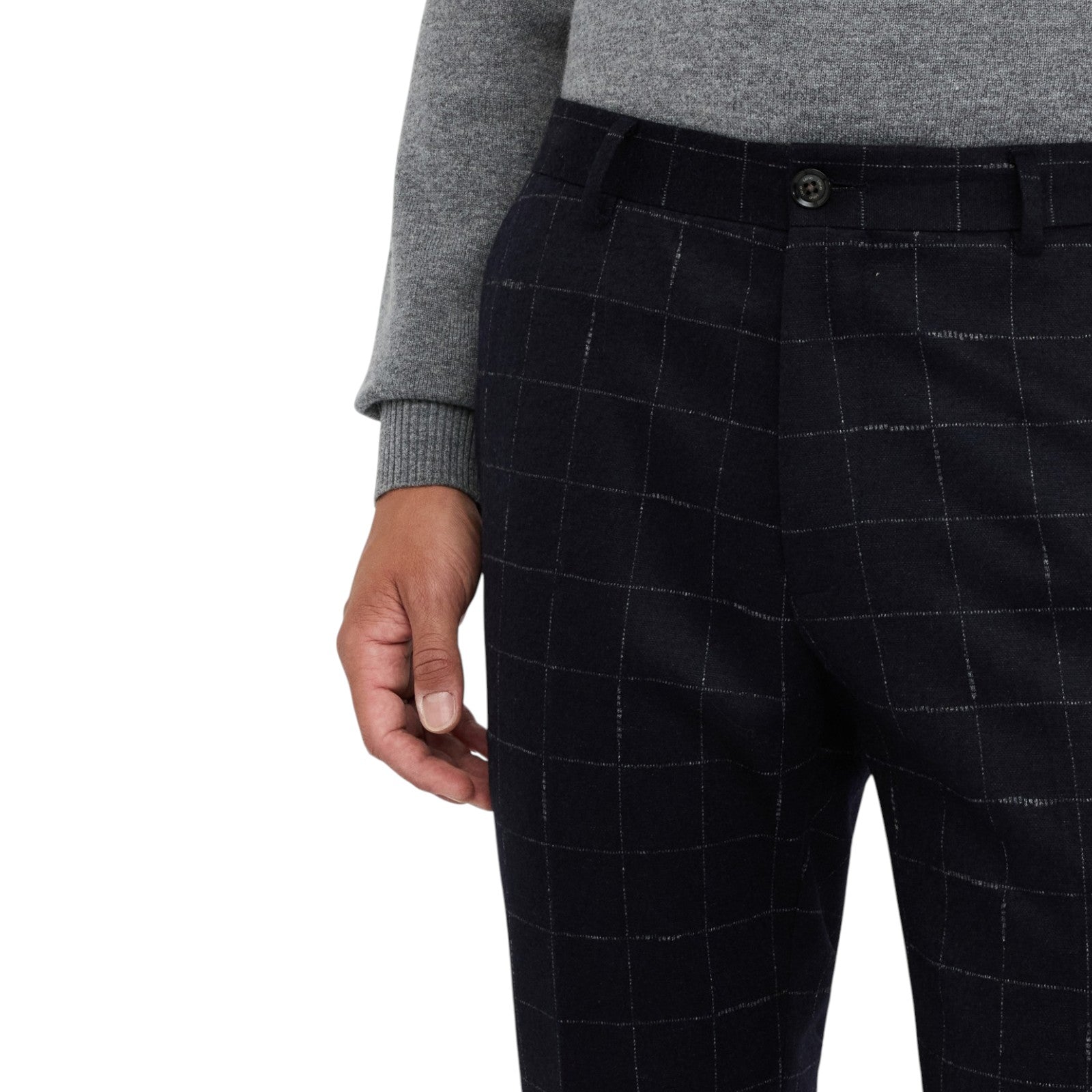 Pantaloni in misto lana e cotone. Motivo check all over. Tasche sui fianchi. Tasche a filetto sul retro. Chiusura con bottone e zip coperta.