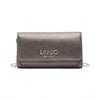 Portafoglio grande grigio. Stampa effetto bottalato. Logo in metallo sul davanti. Tracolla a catena. Due scomparti. Tasca portamonete con zip. Logo interno impresso. Chiusura con patta e bottone magnetico. Prodotto "Liu Jo Better".