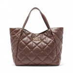 Misure: 64 x 22 x 35 cm. Shopping bag marrone scuro. Lavorazione matelassé. Logo in metallo. Comodi manici. Chiusura con zip Fodera interna.