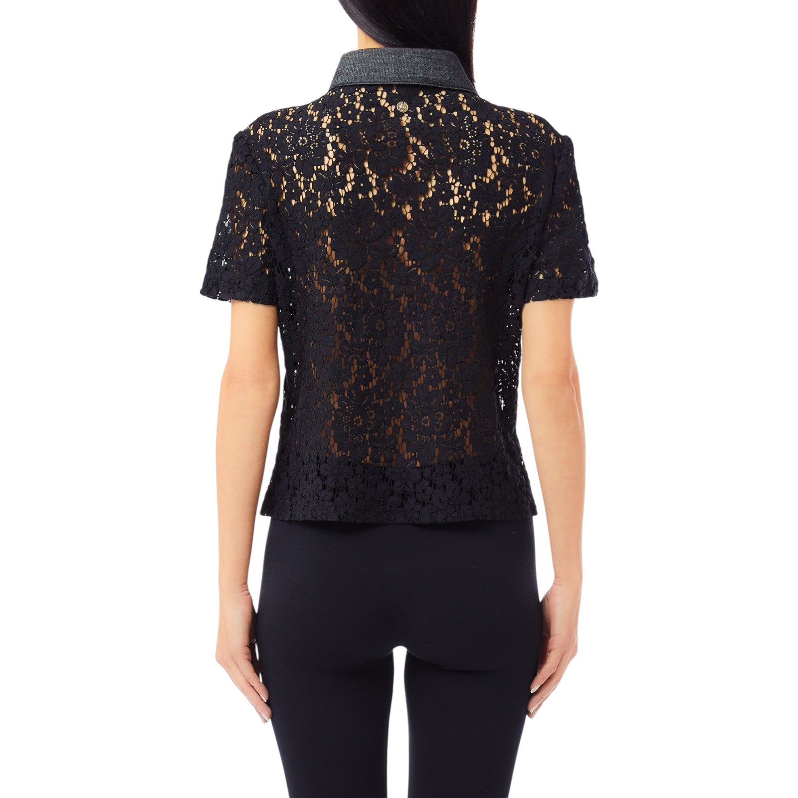 Camicia donna in pizzo con dettagli in denim