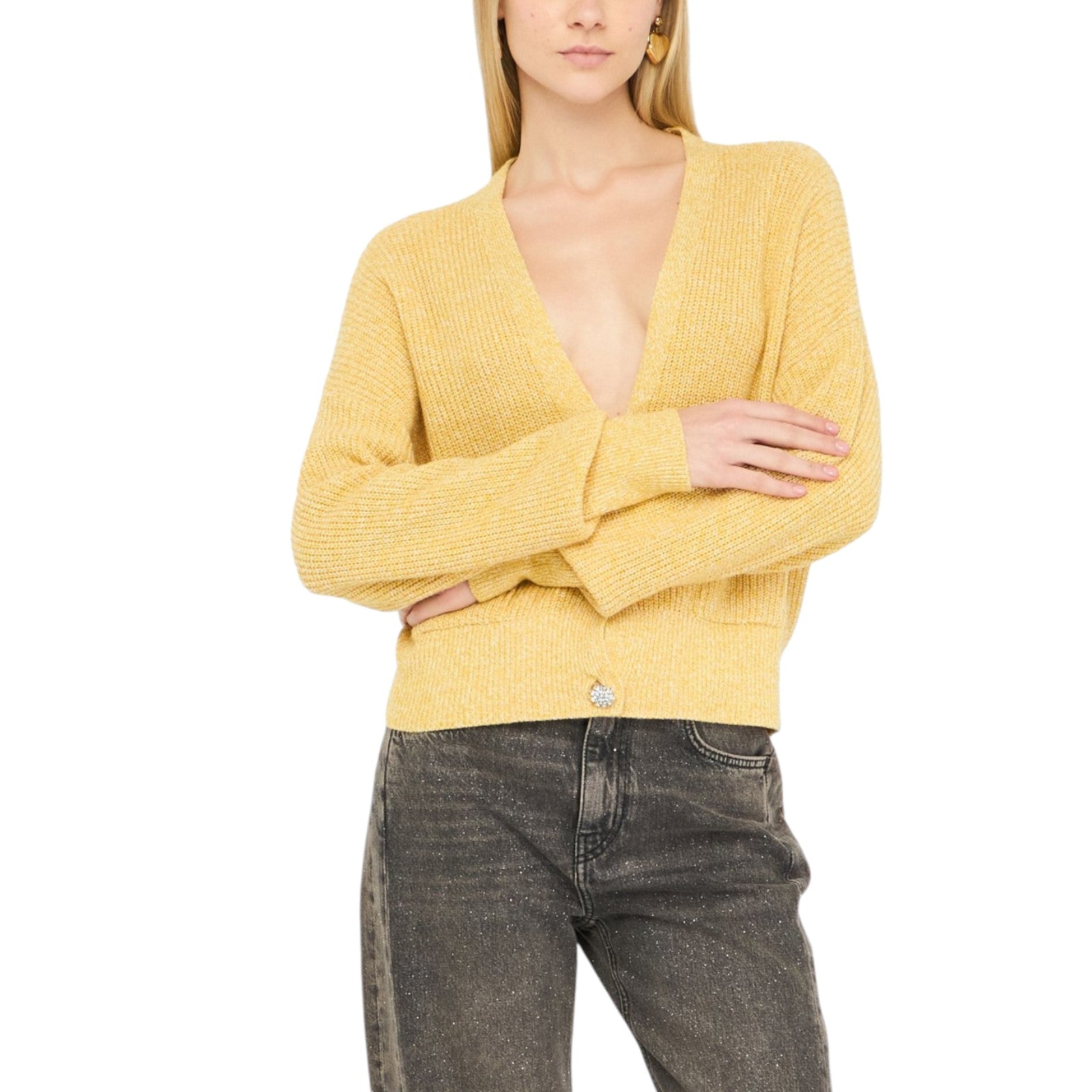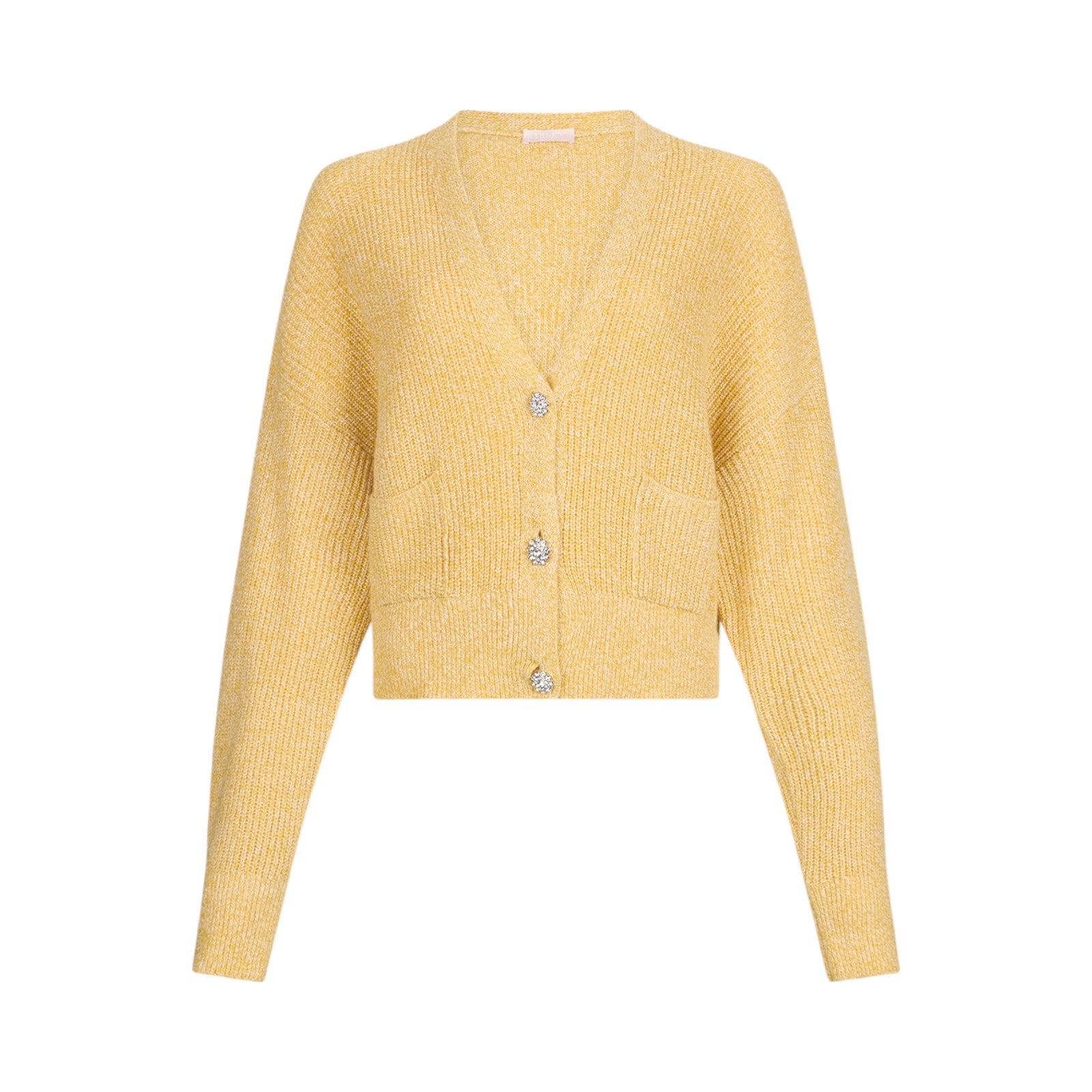 Cardigan con filati mouliné in misto lana e cashmere. Scollo a V. Chiusura con bottoni gioiello. Prodotto "Liu Jo Better".