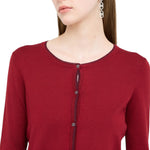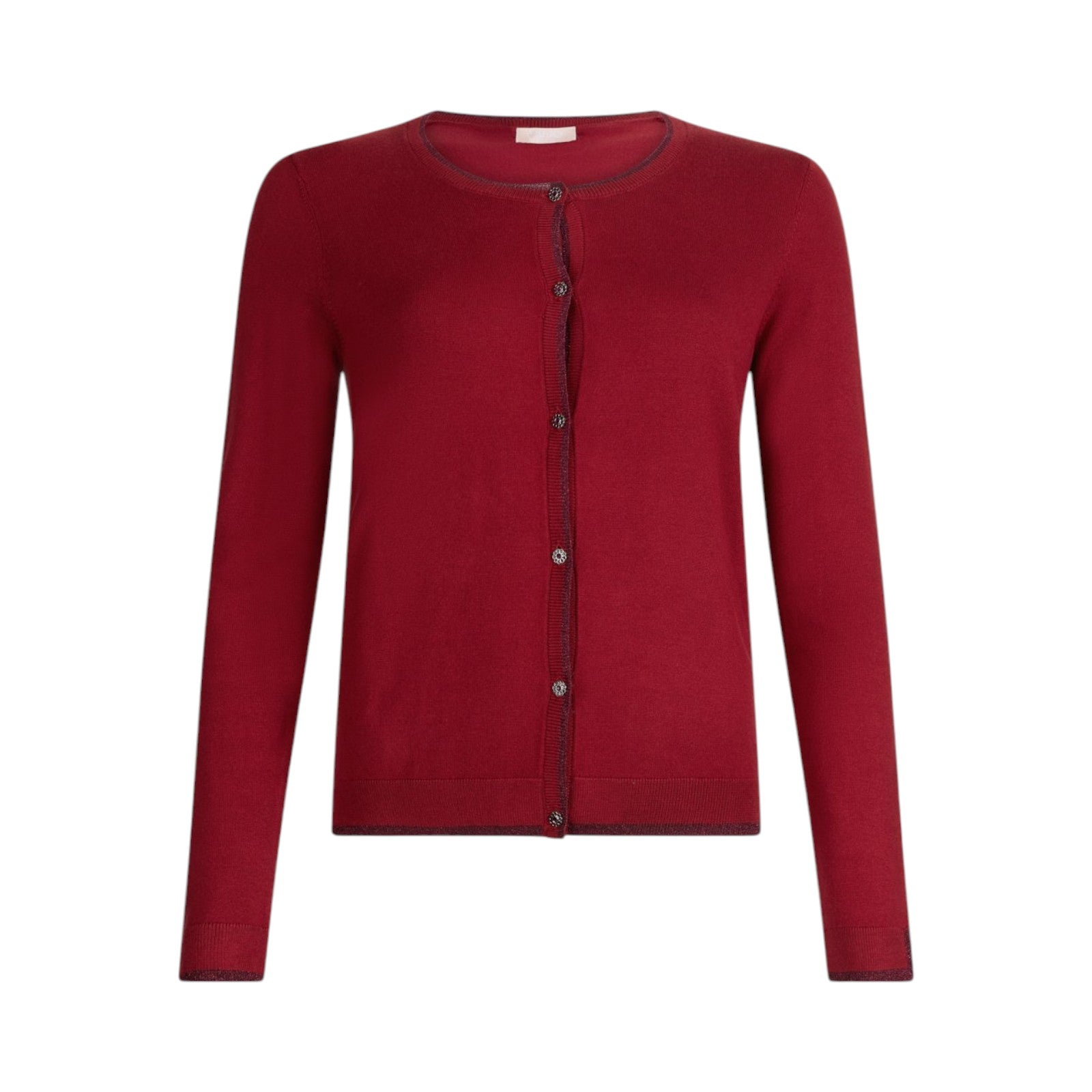 Cardigan rosso in misto viscosa. Interventi in lurex®. Chiusura con bottoni gioiello. Prodotto "Liu Jo Better".