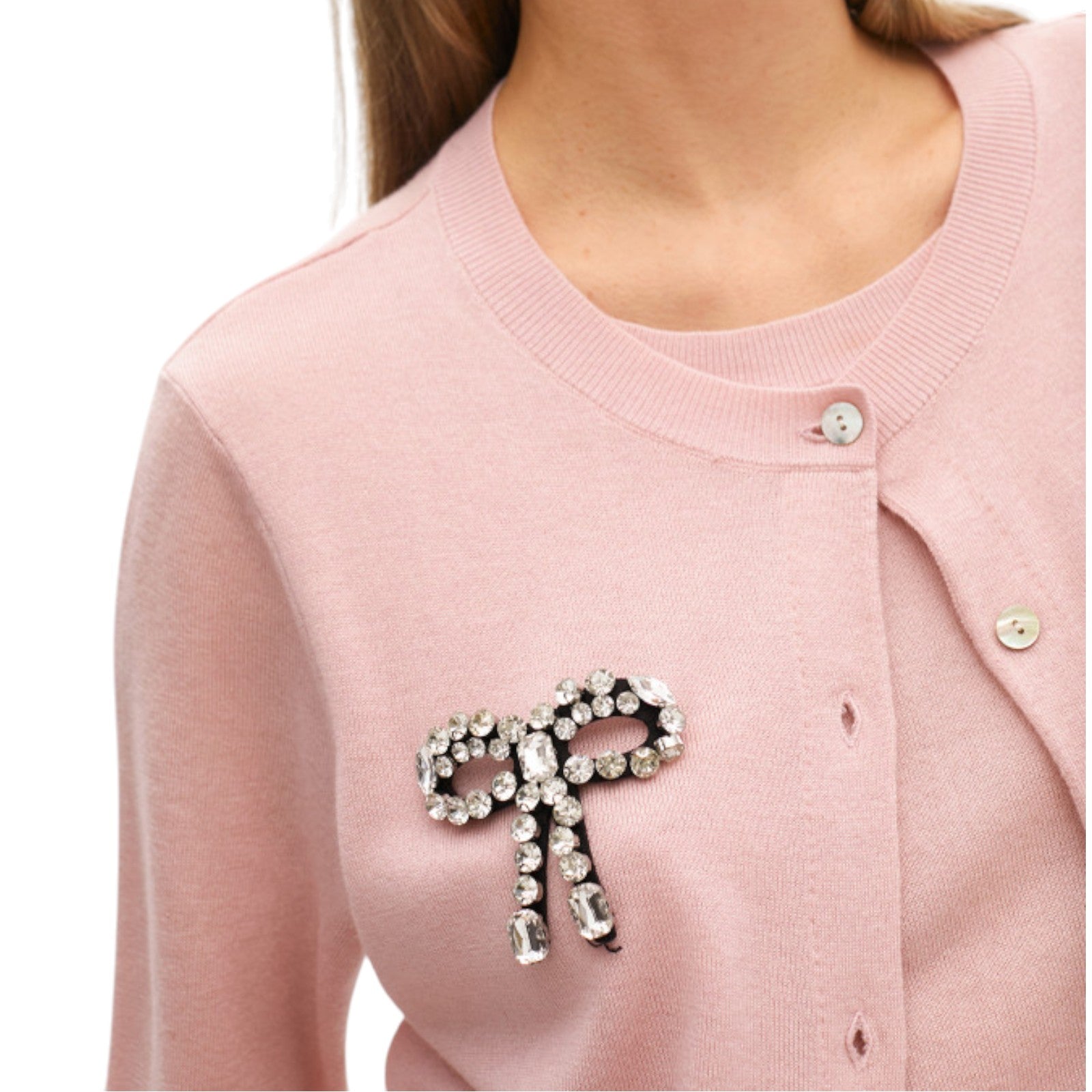 Cardigan a due pezzi in tessuto misto morbido con dettaglio fiocco gioiello. Maniche lunghe, chiusura frontale con bottoni e vestibilità rilassata.