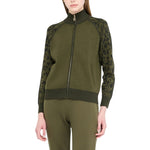 Cardigan verde. Realizzato in maglia di misto viscosa e lurex®. Motivo animalier jacquard. Collo alto. Maniche lunghe raglan. Tasche sui lati. Logo in metallo sul retro. Tirazip logata. Chiusura con zip. Prodotto "Liu Jo Better".
