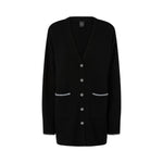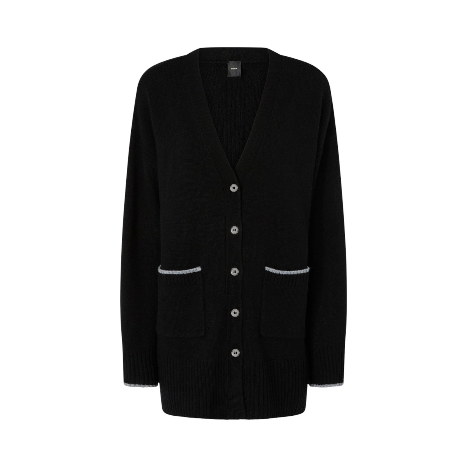 Cardigan lungo con scollo a V e spalle scese, realizzato in soffice misto lana merino e cashmere, il tessuto ideale per le giornate all'insegna del relax. Il filato a contrasto mette in risalto le tasche e gli orli delle maniche in modo discreto e raffinato.