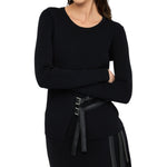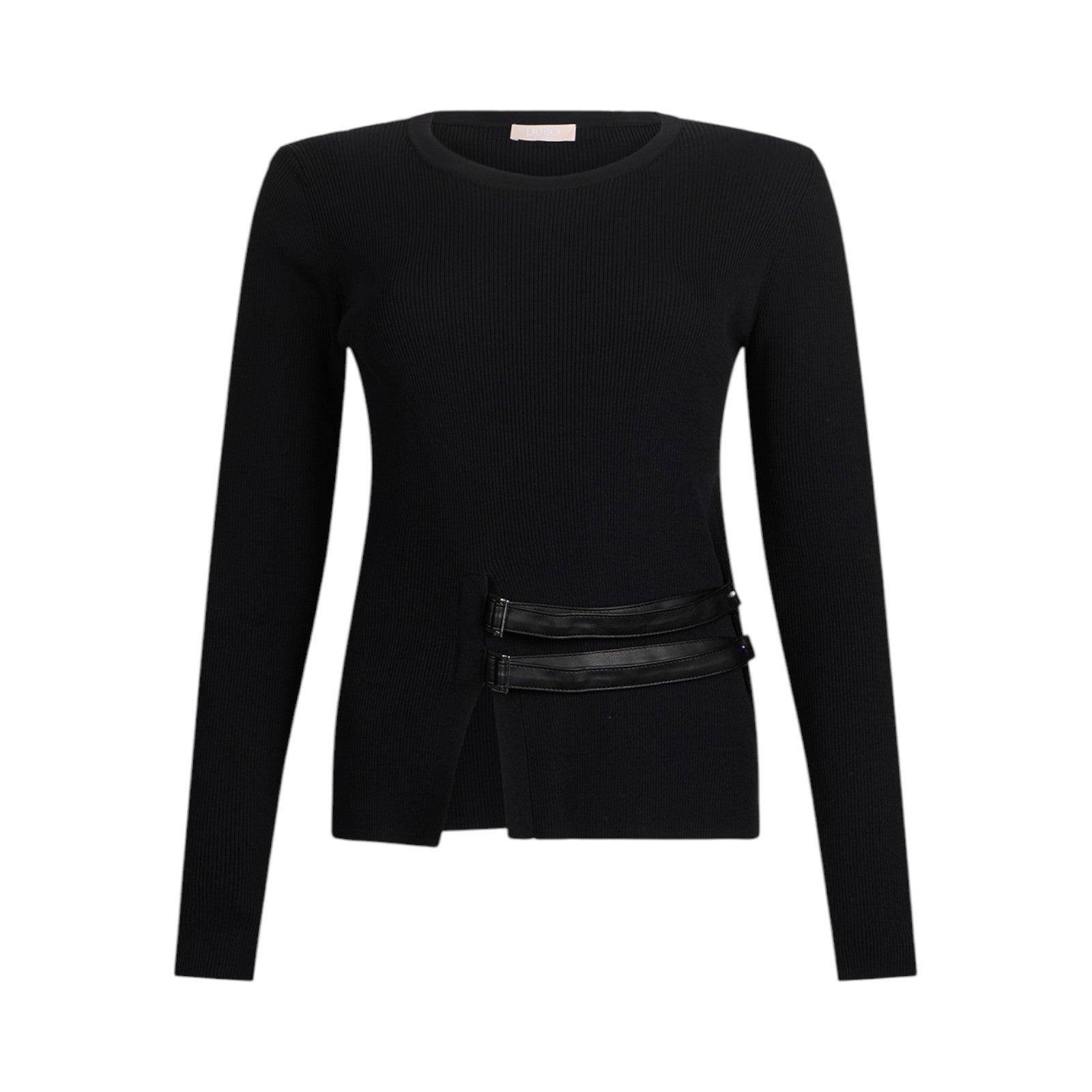Maglia nera da donna in misto viscosa. Maniche lunghe. Girocollo. Spacchetto sul fondo. Fibbie regolabili. Prodotto "Liu Jo Better".