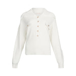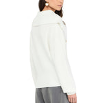Maglia a coste inglesi. Filati in misto viscosa. Maxi collo. Finte tasche. Chiusura con bottoni dorati. La modella è alta 177 cm e indossa la taglia S.