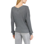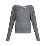 Maglia a coste con filati in misto viscosa. Interventi in lurex®. Vestibilità morbida. Scollo a V. La modella è alta 180 cm e indossa la taglia S.