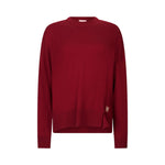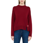 Maglia rossa. Realizzata in misto lana. Taglio girocollo. Maniche lunghe. Motivo cut-out al fondo. Patch logata al fondo. Bordi a costine.