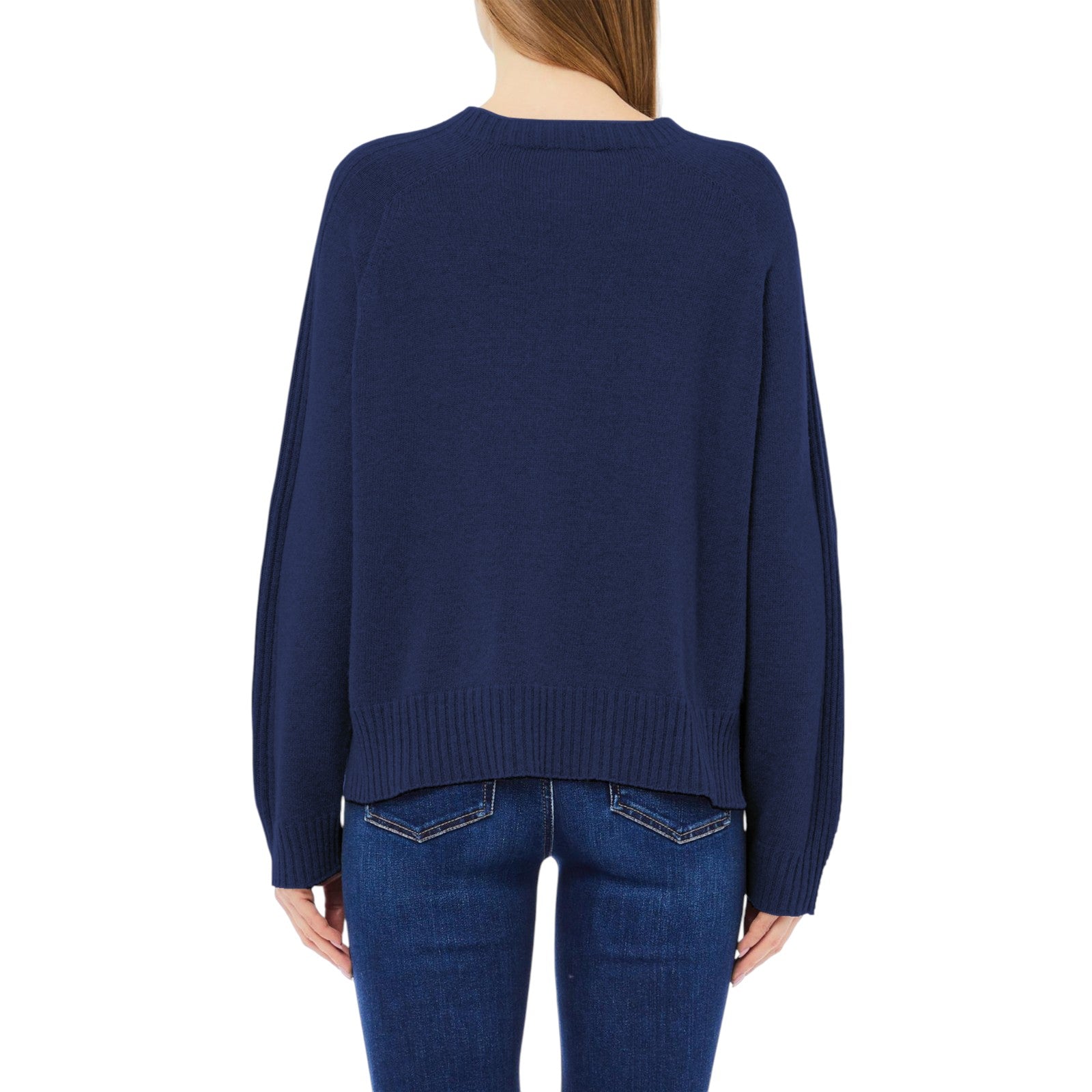 Maglia dai filati in misto lana e alpaca. Girocollo. Intarsi sulle maniche. Strass applicati. Prodotto "Liu Jo Better".