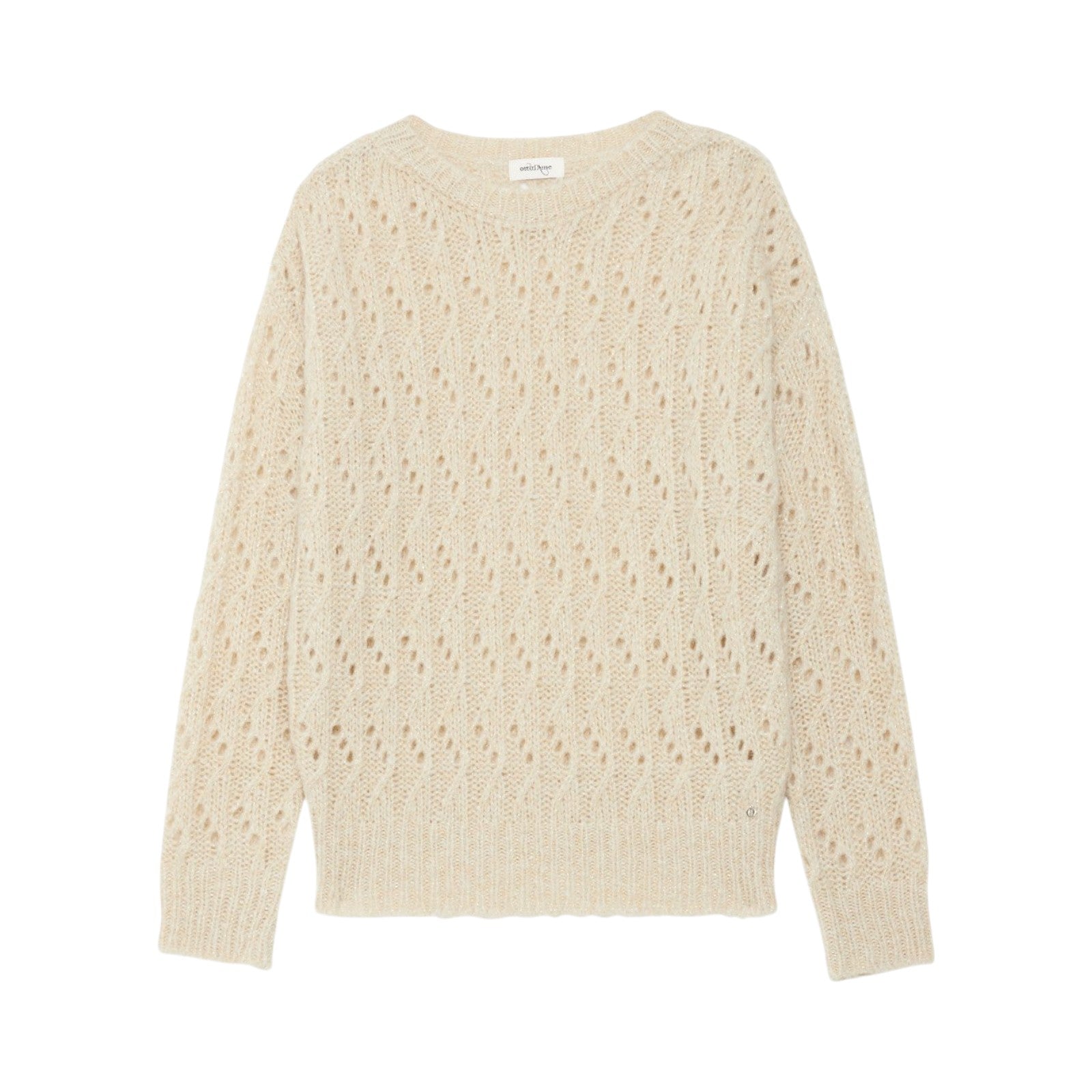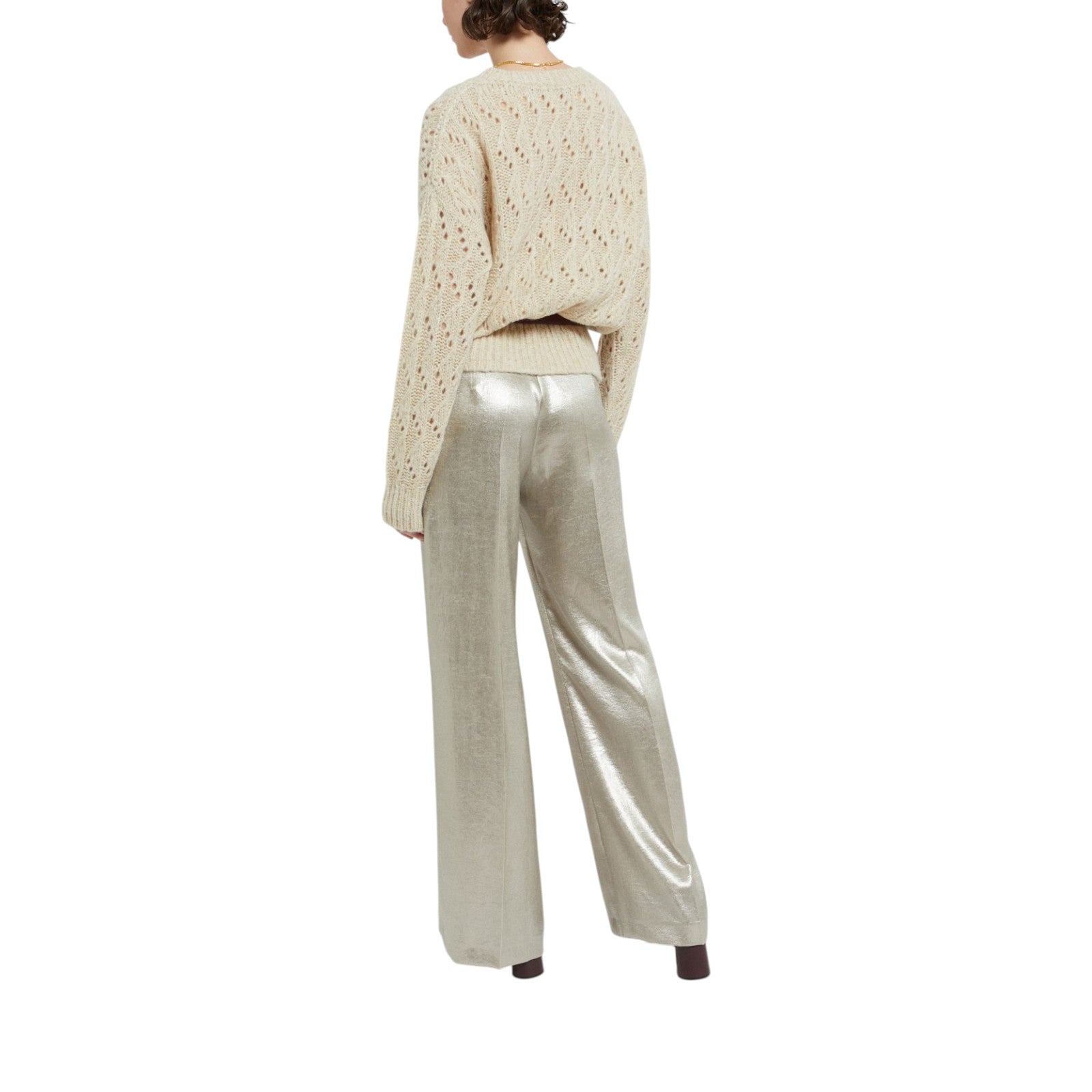 Maglia traforata in misto lana con filato lurex e scollo tondo.