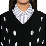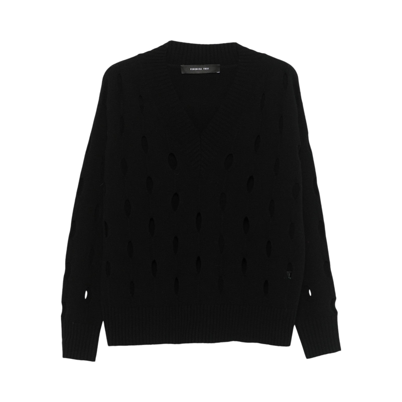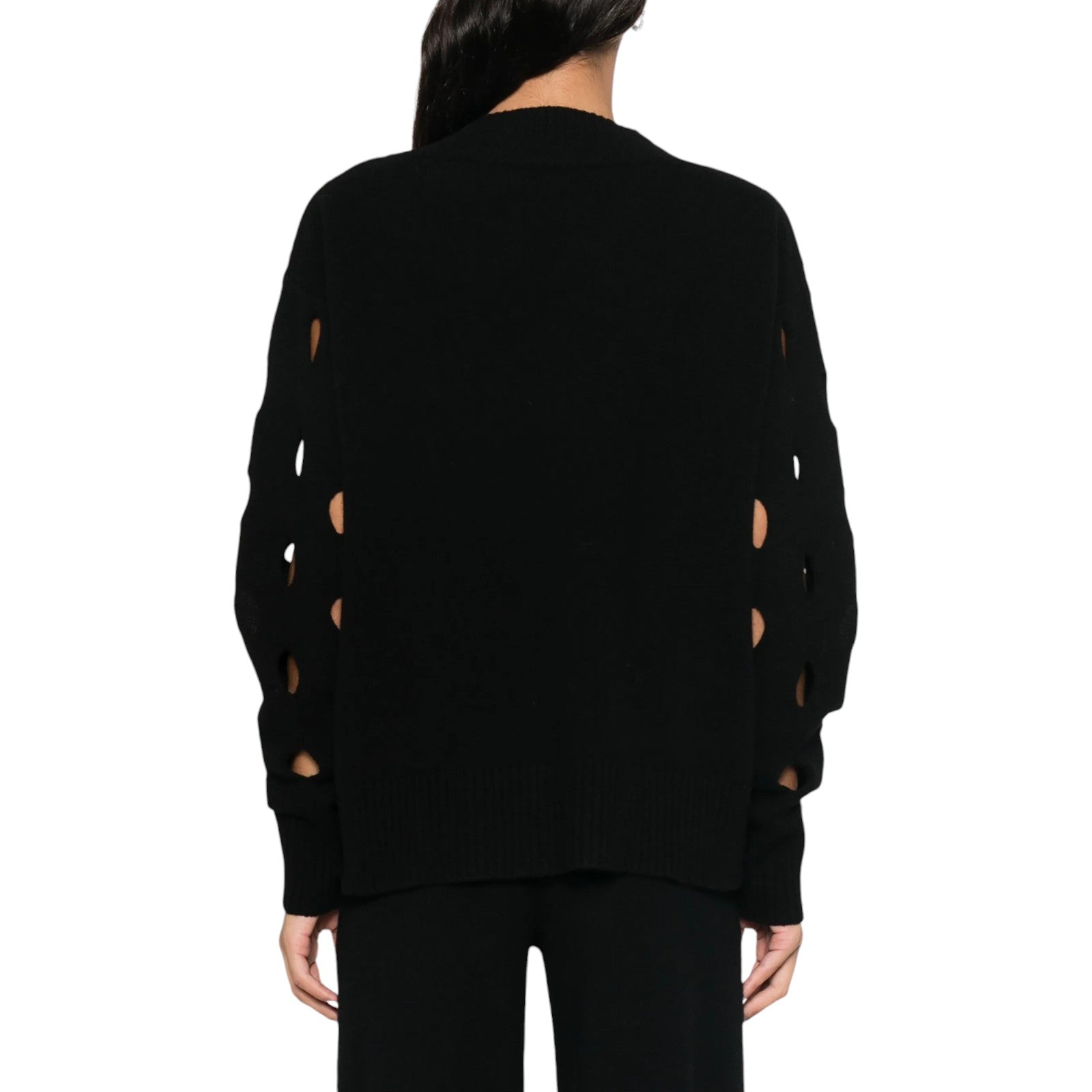 Maglione misto cashmere e lana, design lavorato a maglia, scollo a V a coste, dettaglio cut-out, maniche con spalle scese, orlo e polsini a coste.