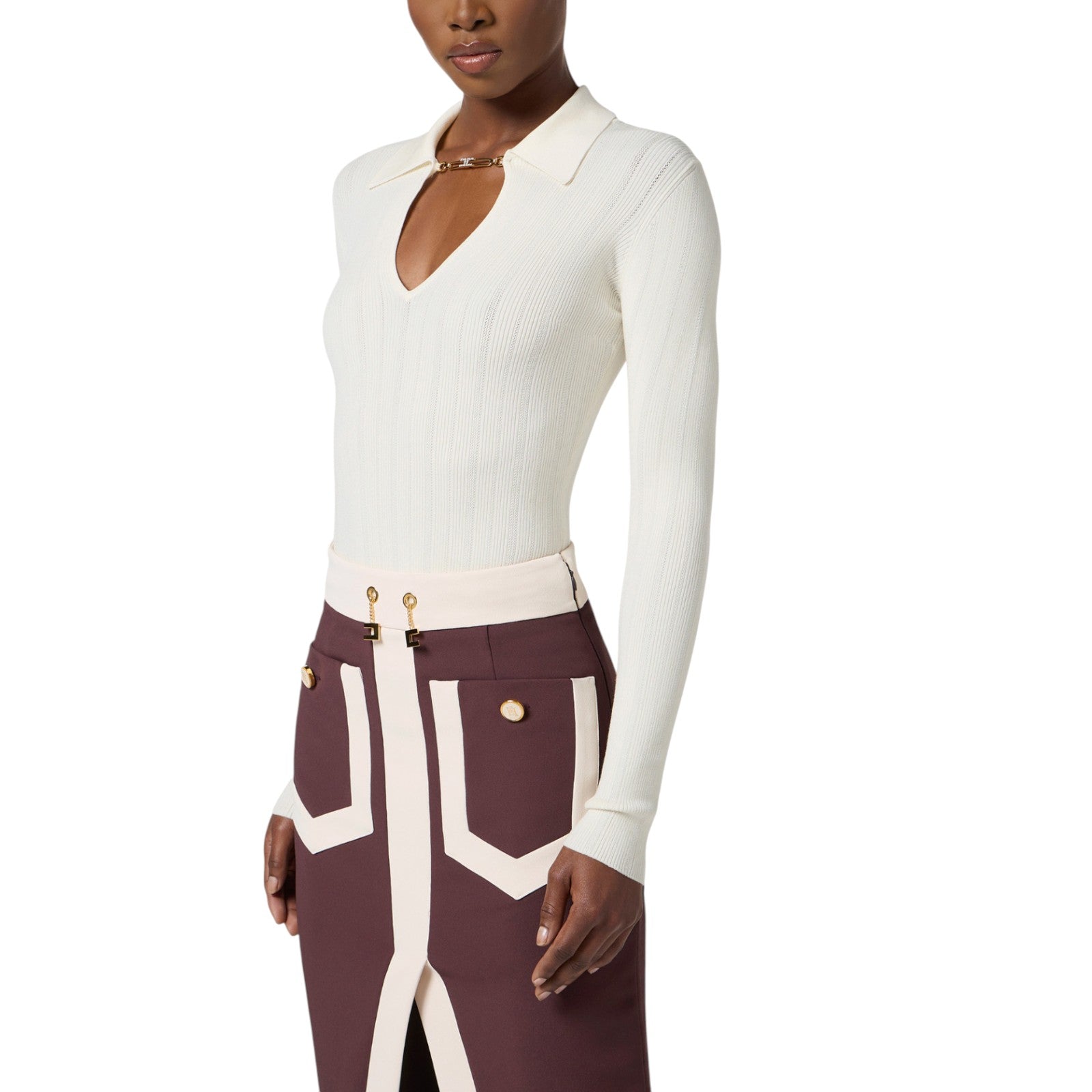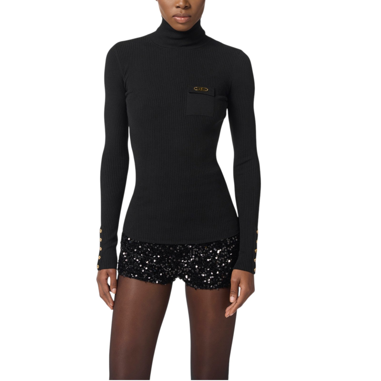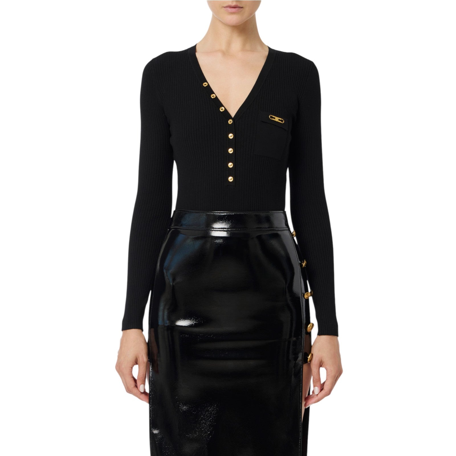 Maglia donna a costine con taschino