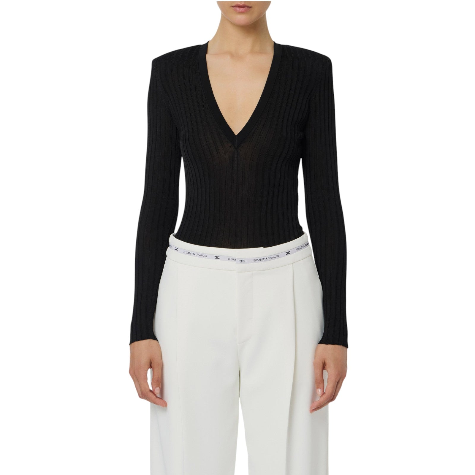 Maglia donna in costina stretch con inserti in pizzo e raso