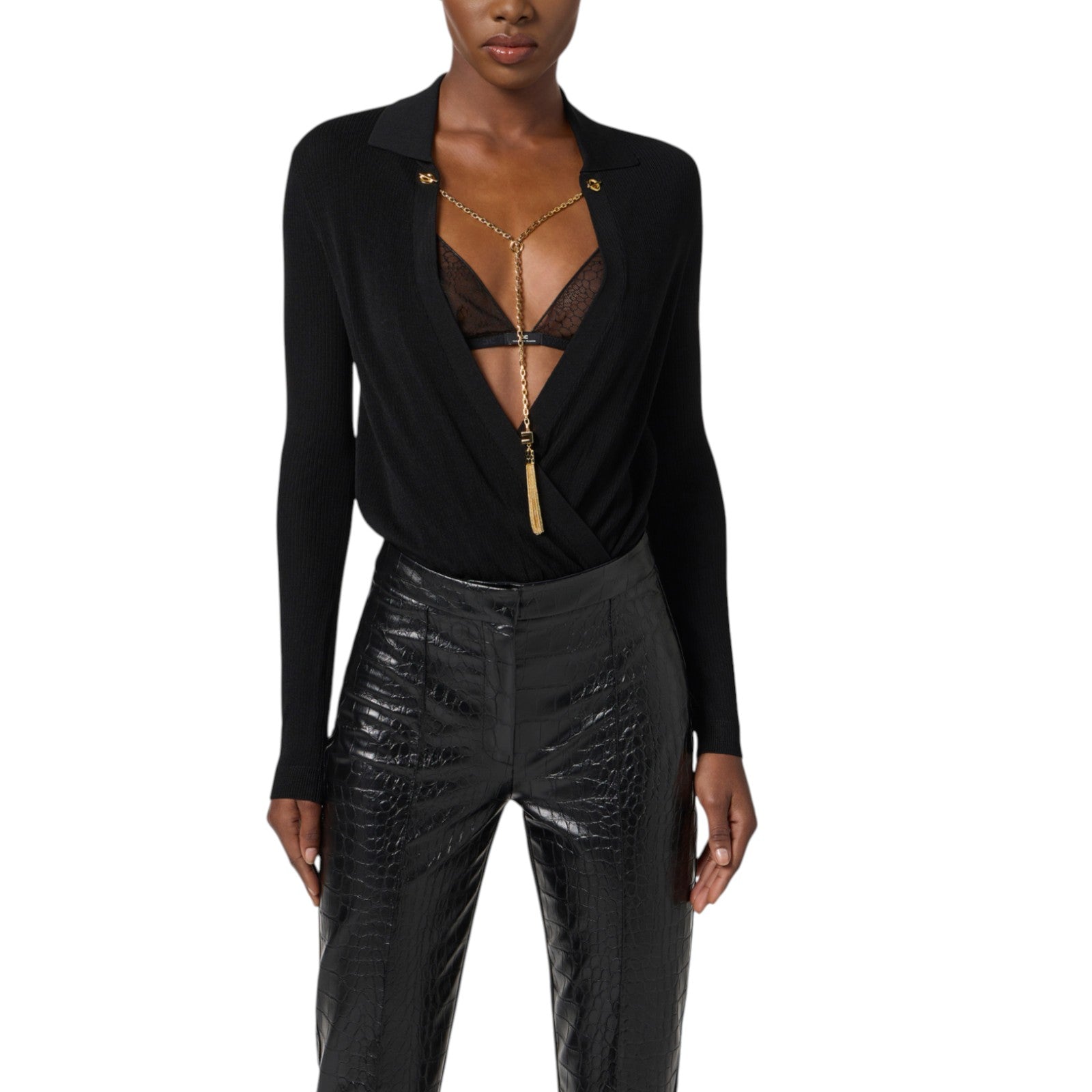 Body donna in maglia di viscosa e seta con catena