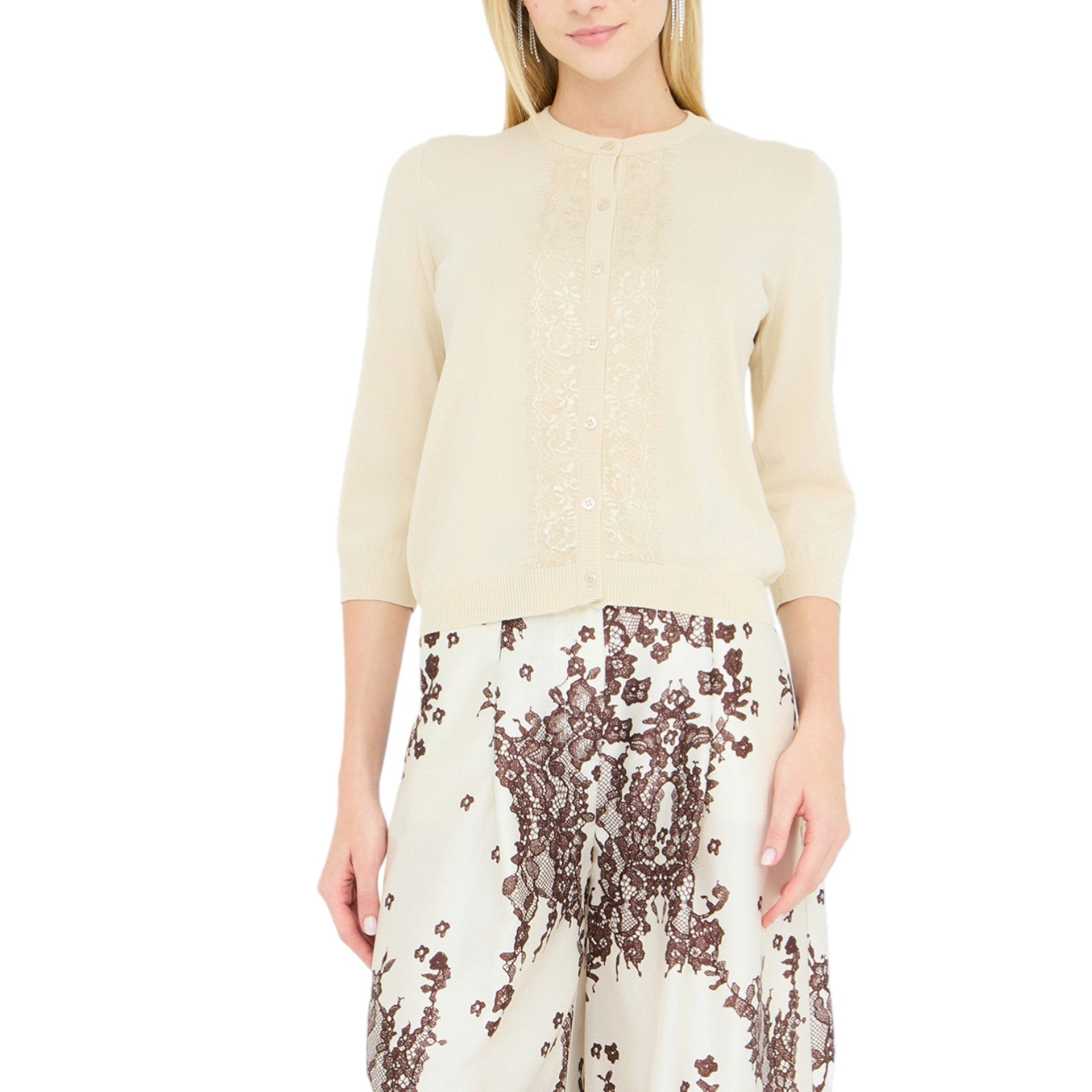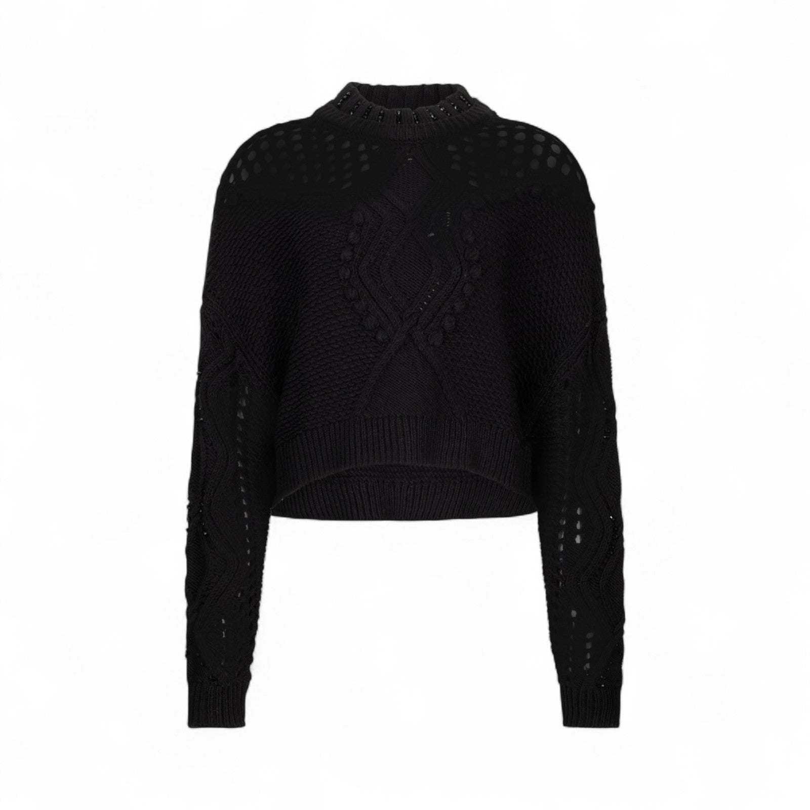 Cardigan donna in maglia a rombi con dettaglio gioiello