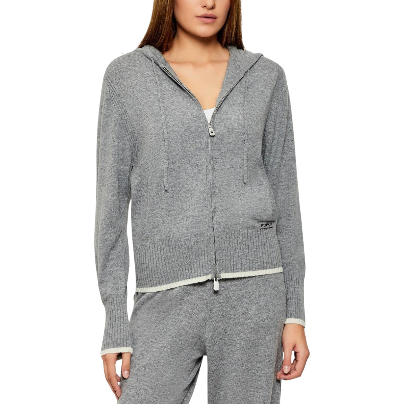 Maglia donna con cappuccio e zip in misto cashmere