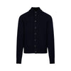 Cardigan con bottoni blu, collo a lupetto, chiusura a bottoni orlo e polsini a coste.