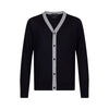 Cardigan in lana. Dettagli a contrasto. Scollo a V. Maniche lunghe. Bordi a costine. Logo LJ in metallo al fondo. Chiusura con bottoni.