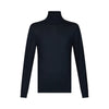 Dolcevita blu. Realizzata in maglia di lana merino. Maniche lunghe. Bordi a costine. Logo LJ al fondo.
