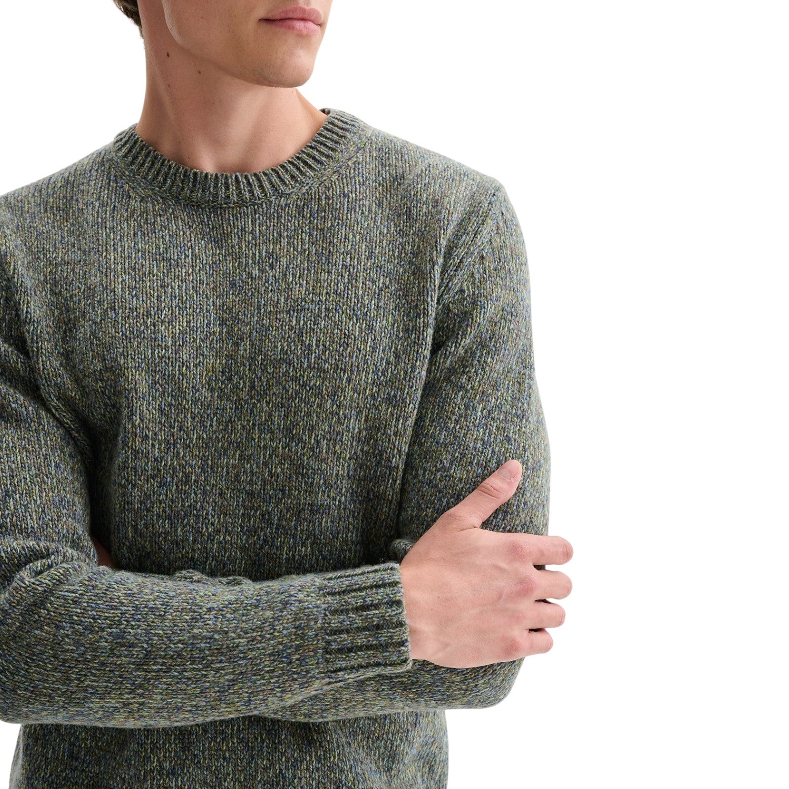 Maglia girocollo moulinè, che si distingue per l'insieme dei colori che si intrecciano creando cromie esclusive e sofisticate. Collo, fondo e polsi a coste.