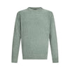 Maglia verde. Realizzata in ciniglia. Taglio girocollo. Maniche lunghe. Bordi a coste.