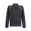 Maglia blu. Realizzata in ciniglia. Collo alto. Maniche lunghe raglan. Bordi a coste. Logo LJ al fondo.