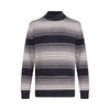 Maglia blu e bianca. Realizzata in ciniglia. Motivo a righe jacquard. Collo alto. Maniche lunghe. Bordi a costine. Logo LJ al fondo.