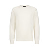 Maglia bianca. Realizzata in lana cashmere. Lavorazione a costine. Taglio girocollo. Maniche lunghe. Logo LJ in metallo al fondo.