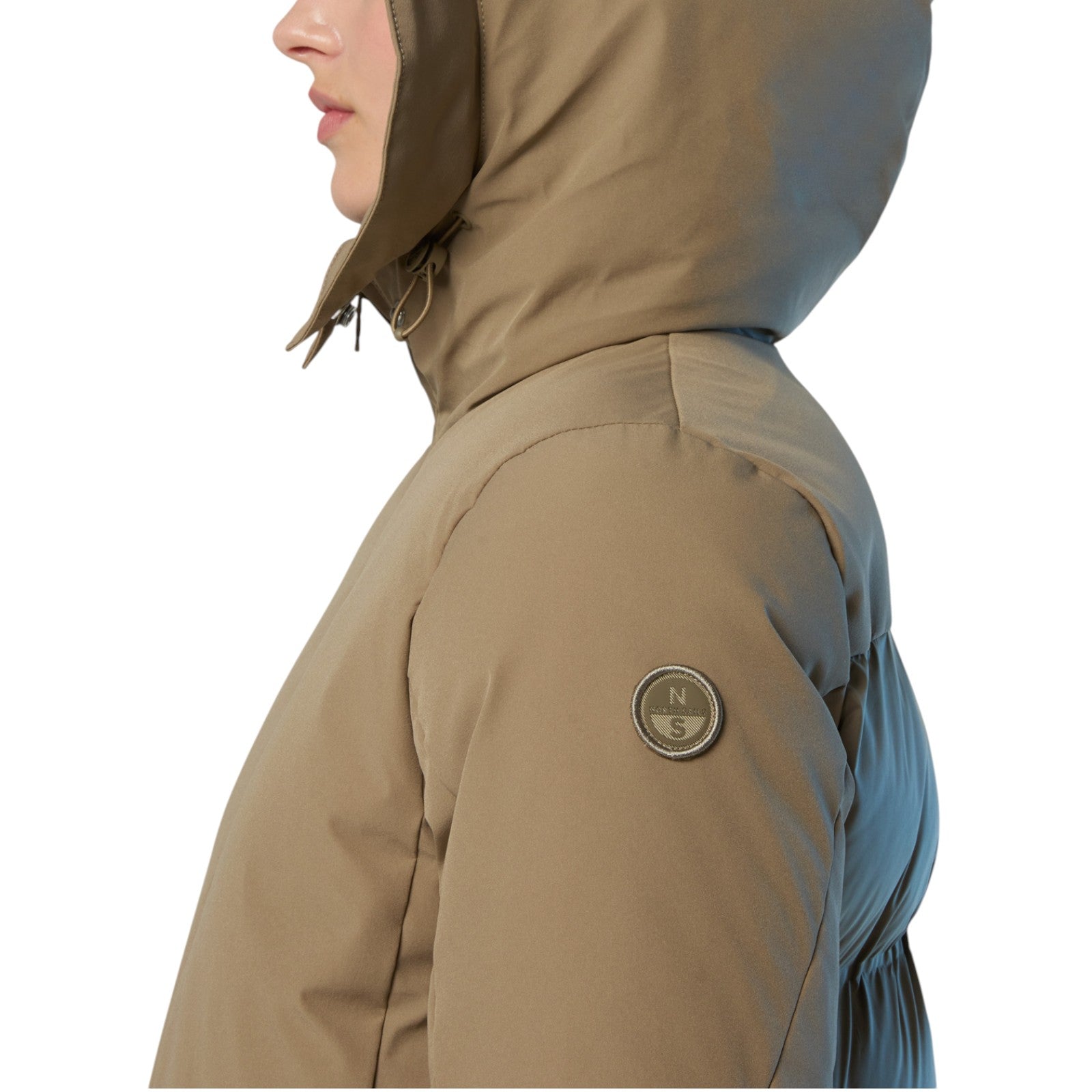 Realizzato in nylon stretch. Finitura DWR senza l'uso di PFAS. Vestibilità regolare. Fronte e cappuccio rifiniti in tessuto 2 layer. Trapuntatura al laser. Visiera pieghevole. Chiusura con zip a doppio cursore. Tasche laterali foderate in micropile. Imbottitura riciclata. Patch North Sails sulla manica.