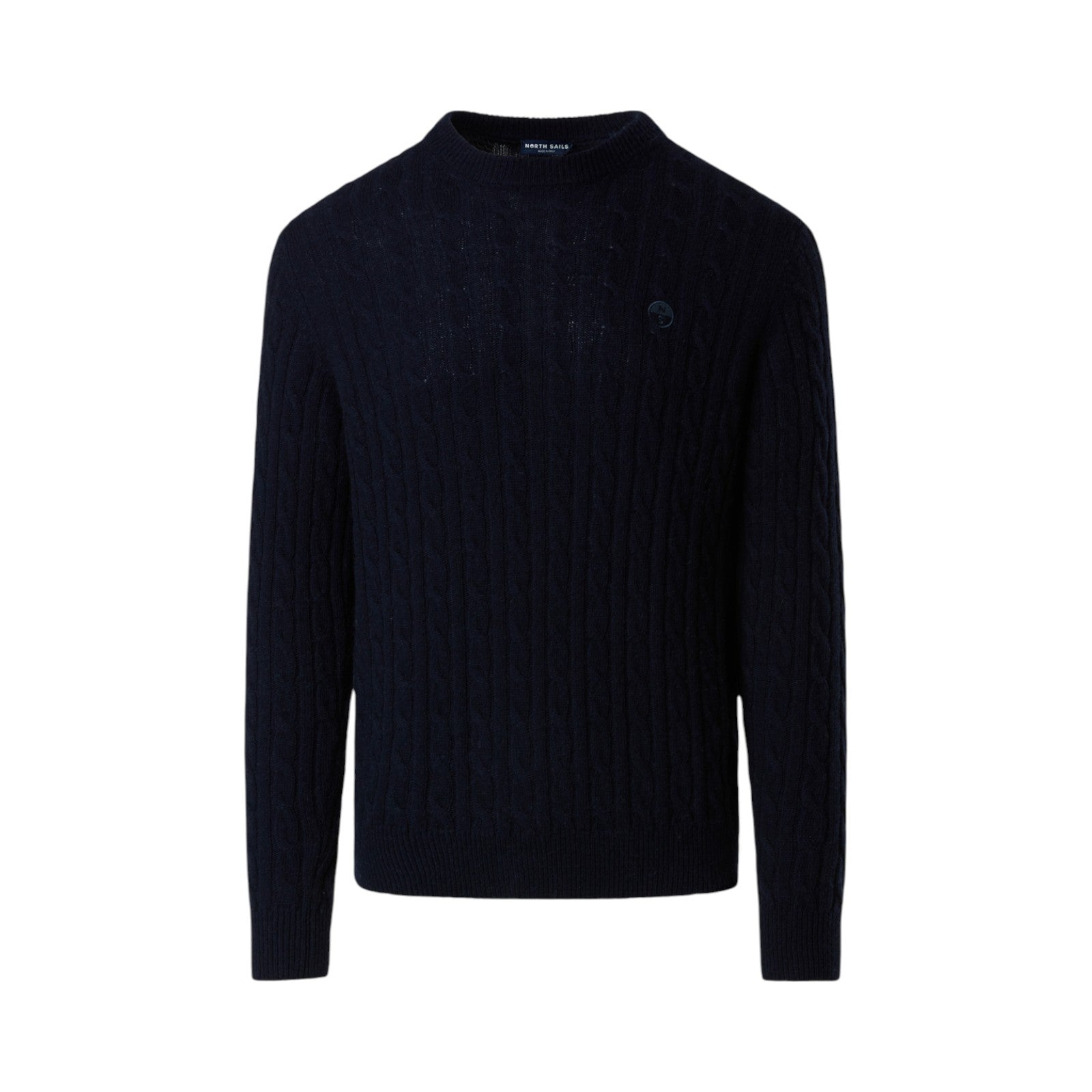 Realizzato in misto cashmere. Contiene fibre riciclate. Lavorazione a trecce. Finezza 7. Vestibilità regolare. Collo a giro. Bordi a costine. Logo ricamato sul petto.