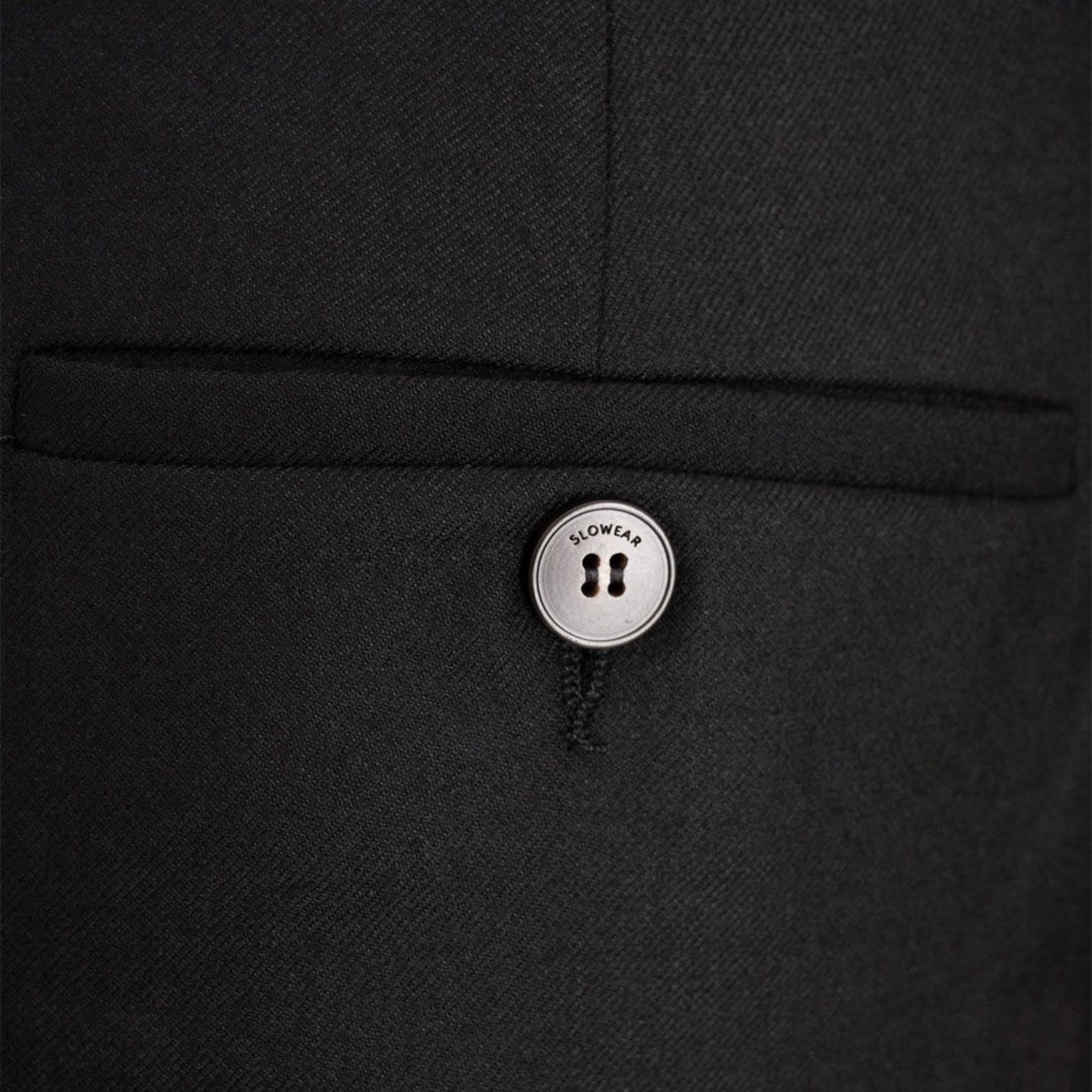 Il pantalone presenta tasche anteriori america, tasche posteriori monofiletto con bottone, gamba morbida e fondo ad allargare.