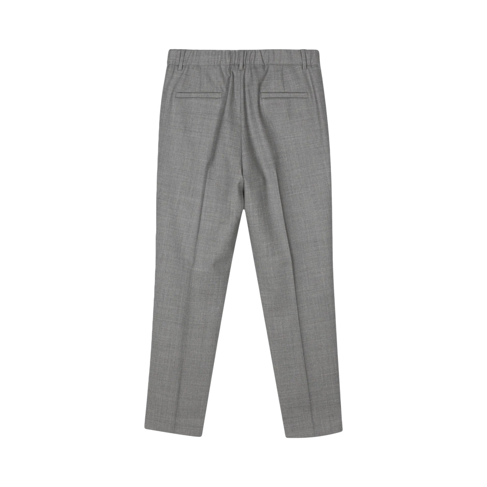 Il pantalone presenta tasche anteriori america, tasche posteriori monofiletto, cintura elastica dietro.