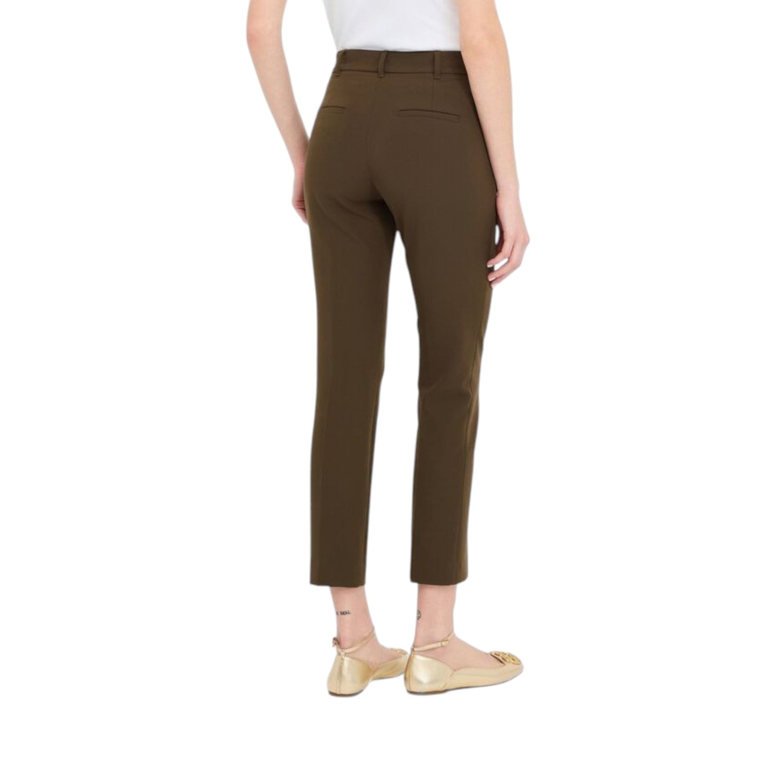 Pantaloni a sigaretta neri in tessuto tecnico stretch. Comode tasche. Tasche a filetto sul dietro. Piega stirata.
