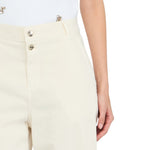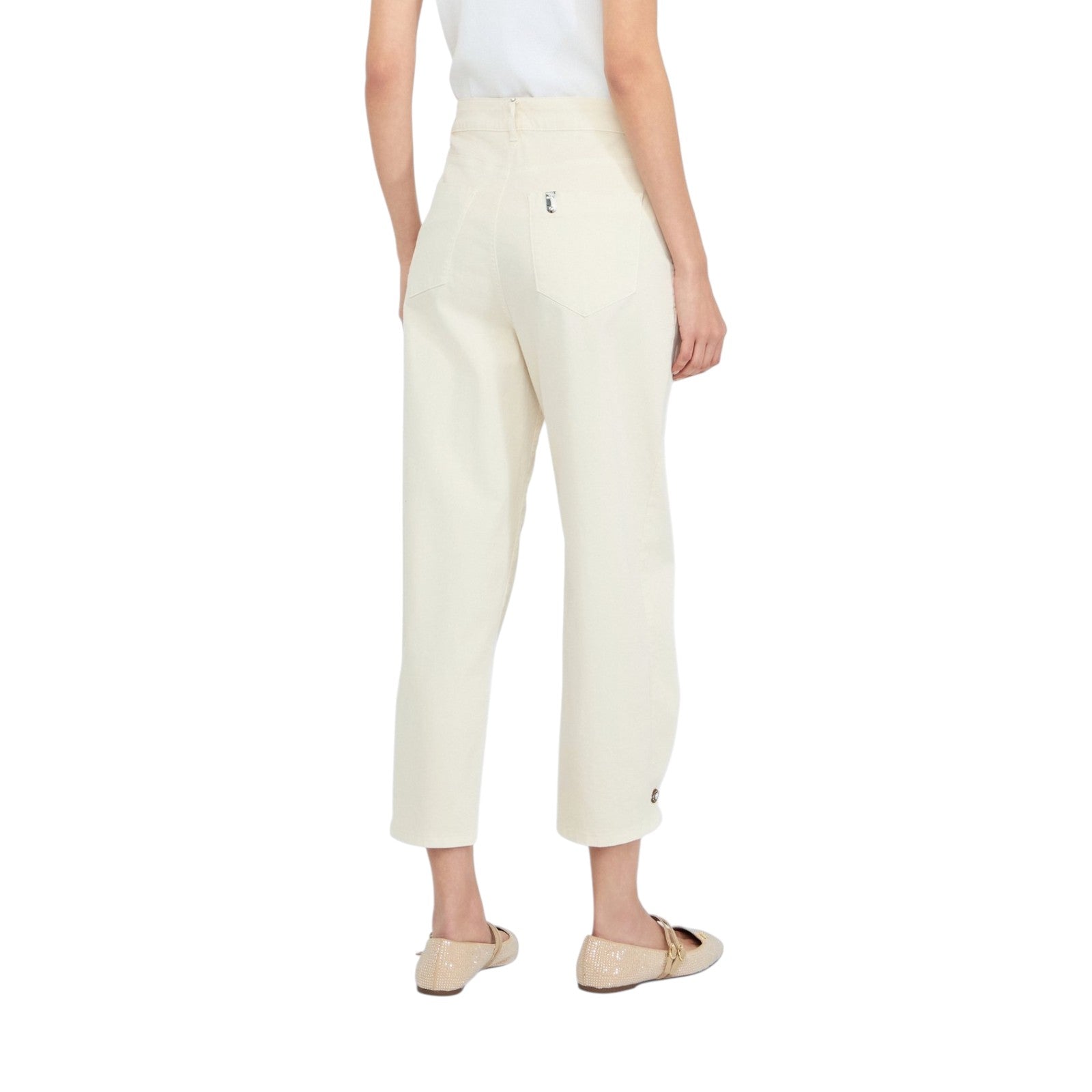 Pantaloni da donna in raso di cotone. Modello ballon. Vita alta. Comode tasche. Gamba slim con pince. Bottone gioiello sul fondo. Lunghezza sopra la caviglia.