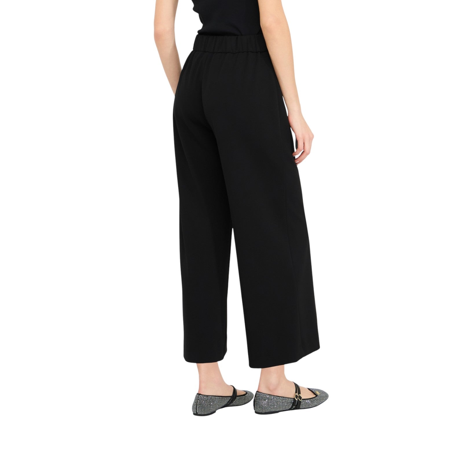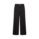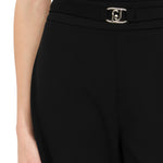Pantaloni da donna in punto milano. Vita alta. Gamba flare. Taglio cropped. Cintura con logo monogram. Inserto elastico sul dietro. Chiusura nascosta con zip sul lato. La modella è alta 180 cm e indossa la taglia 40.