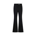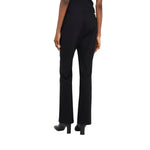Pantaloni neri. Realizzati in tessuto stretch. Gamba flare. Vita alta. Tasche sui fianchi. Logo in metallo. Chiusura con bottoni e zip coperta.