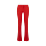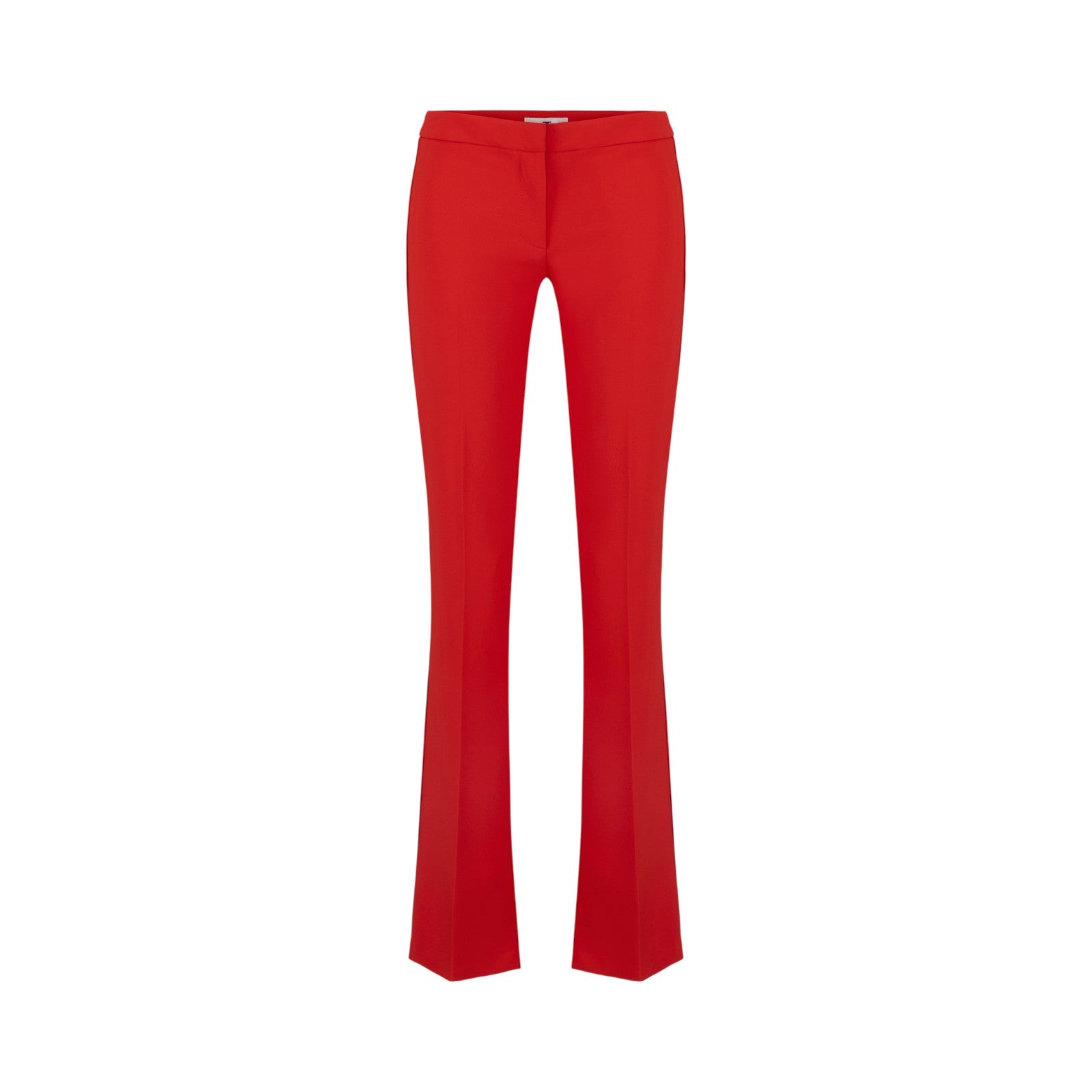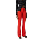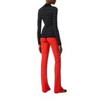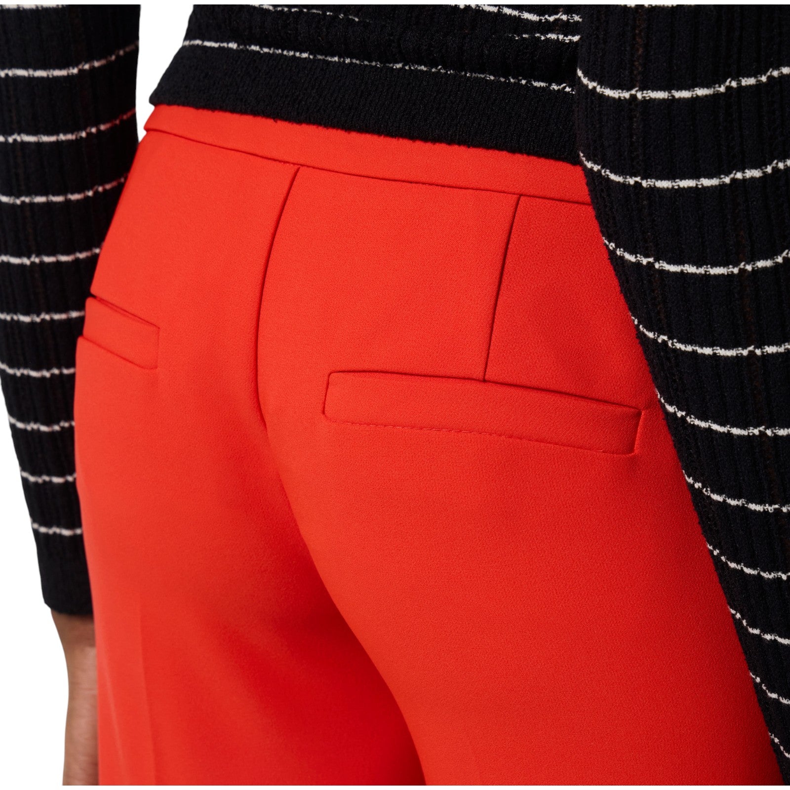 Pantaloni in crêpe leggero. I tagli laterali sono sottolineati dalle cuciture riportate esternamente, rifinite con tessuto a taglio vivo e impunture. L'etichetta con logo sul fianco completa il capo. Vestibilità aderente.