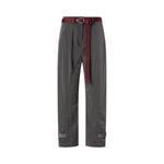 Pantaloni dalla linea morbida e rilassata, realizzati in tessuto leggero con fondo risvoltato e cintura in contrasto annodata in vita.