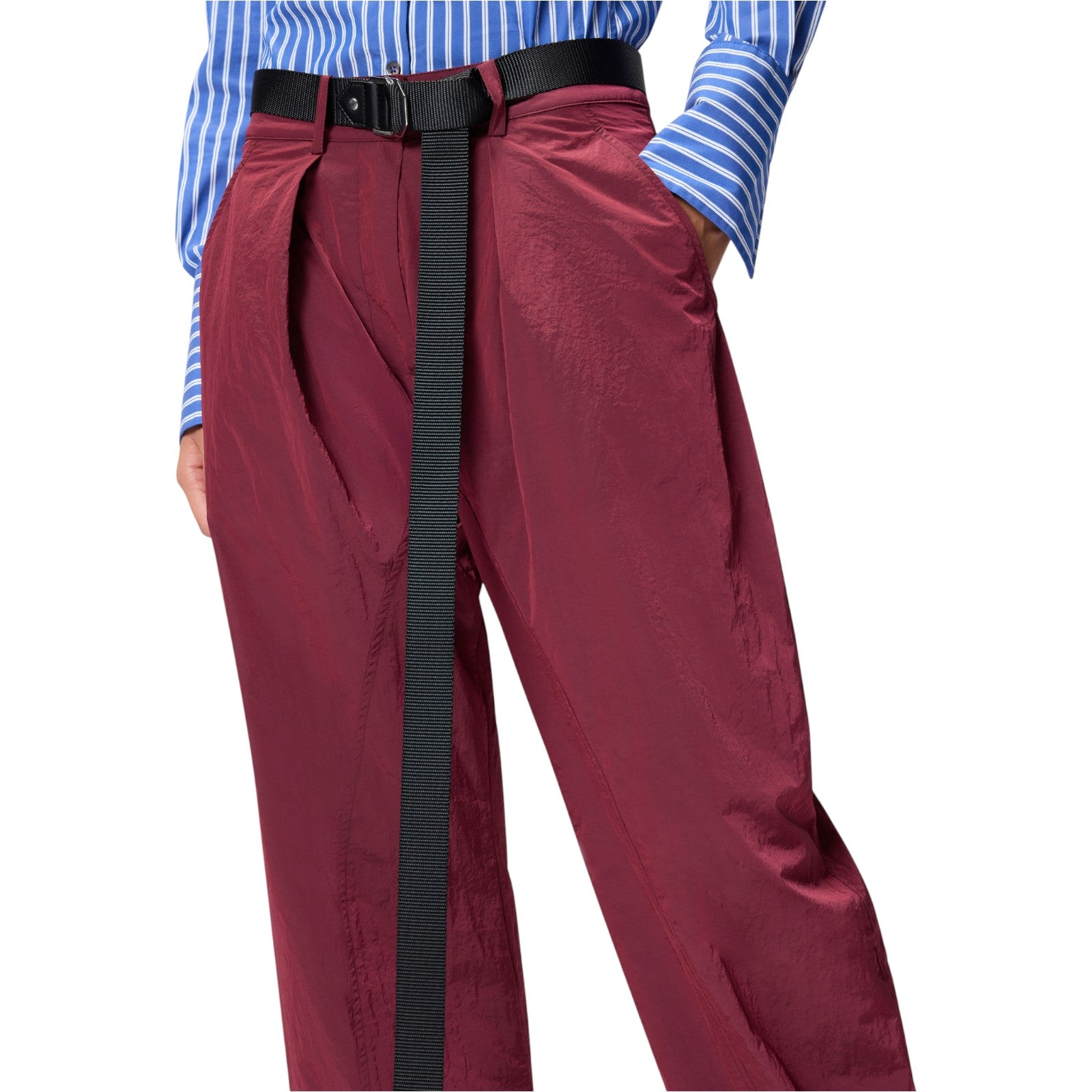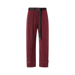 Pantaloni dalla linea morbida e rilassata, realizzati in tessuto leggero con fondo risvoltato e cintura in contrasto annodata in vita.