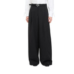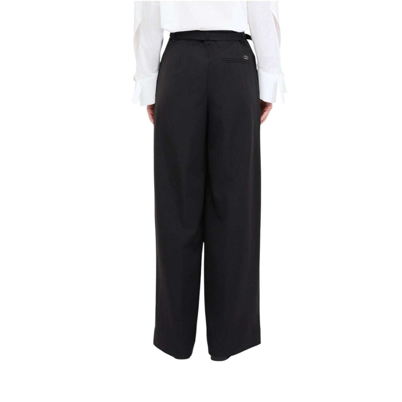 Pantaloni eleganti in tessuto tecnico stretch. Filati in misto viscosa. Pince sul davanti. Comode tasche. Tasca a filetto sul dietro. Cintura con fibbia gioiello. La modella è alta 178 cm e inossa la taglia 40.