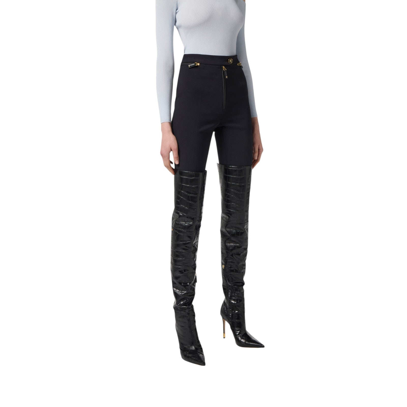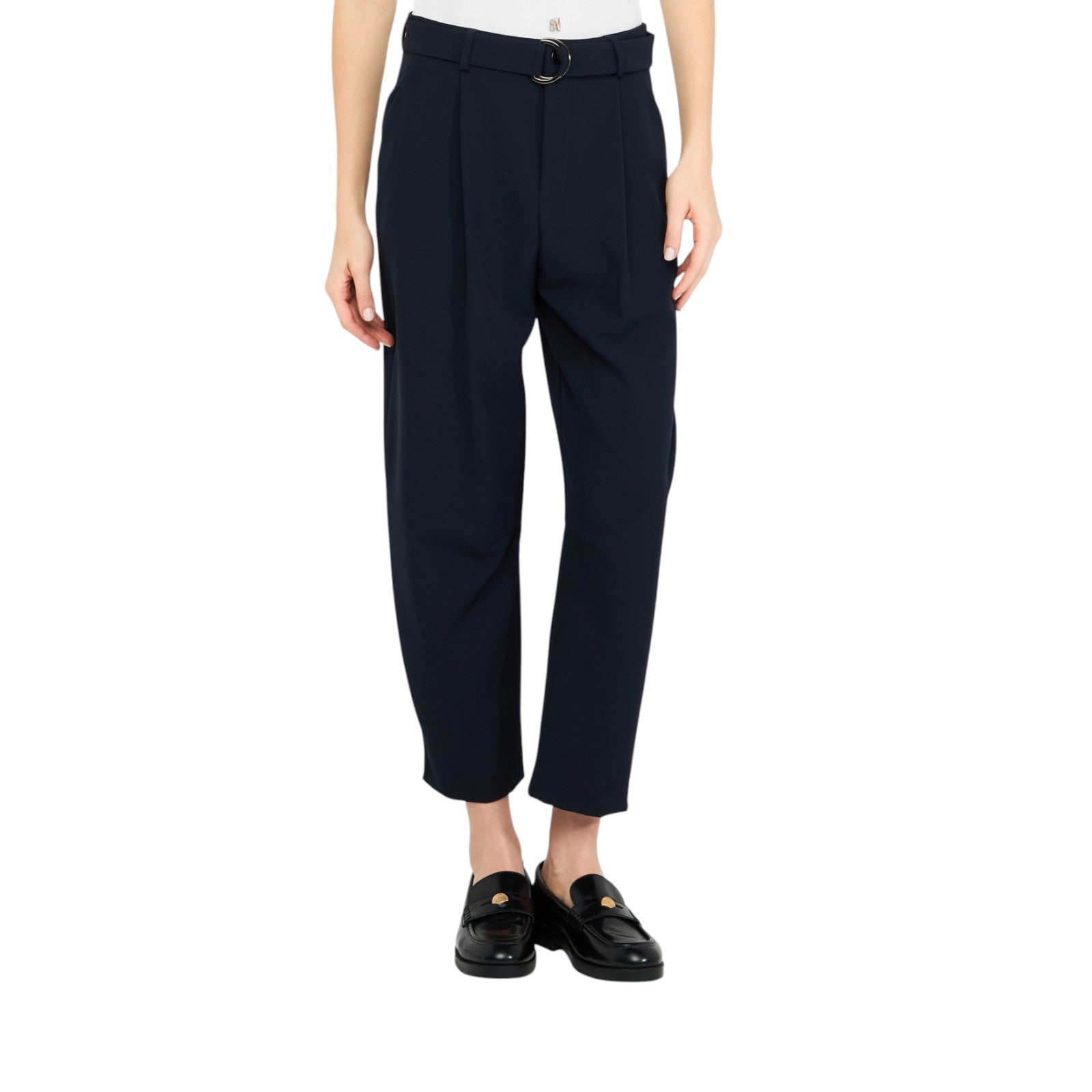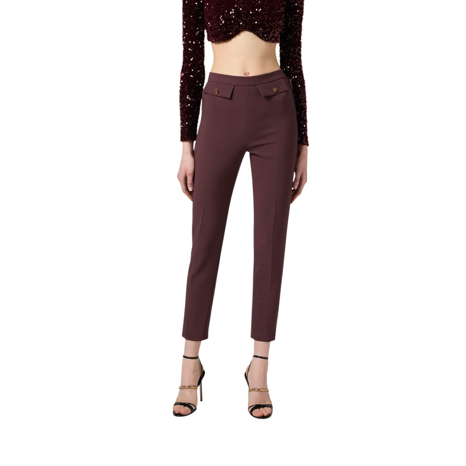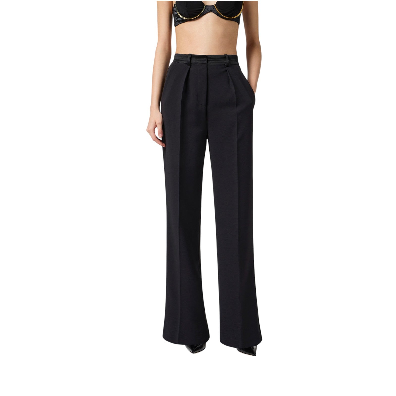 Pantaloni donna in crêpe leggero con dettagli smoking